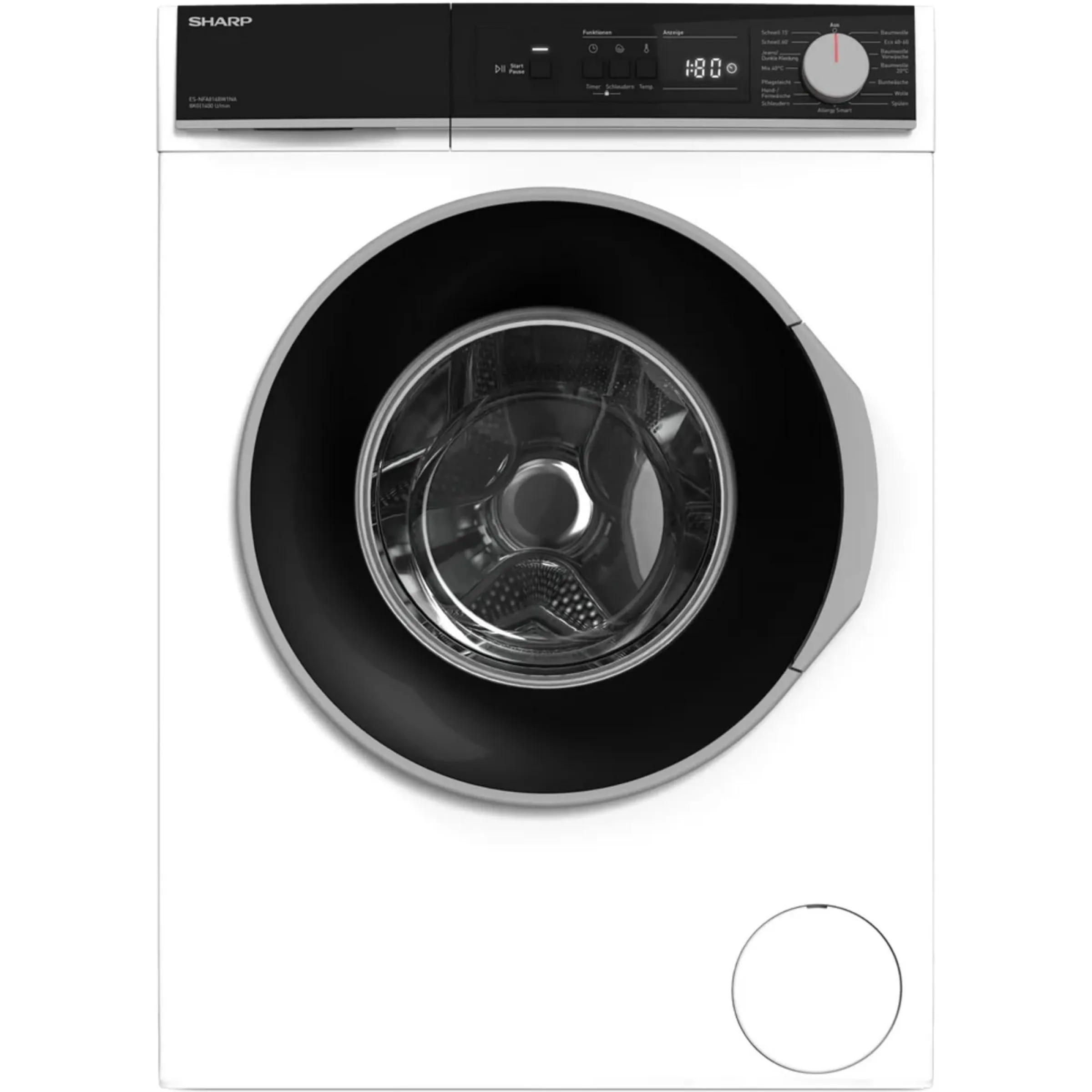 Design und Funktion überzeugen: Die Sharp Waschmaschine punktet in elegantem Weiß mit schwarzen Akzenten. Automatische Wassermengenanpassung unterstützt einen sparsamen Umgang mit Ressourcen. Zusatzfeatures wie Notentleerungsschlauch und der Mehrfachkompartiment-Detergensspender sorgen für extra Flexibilität.
