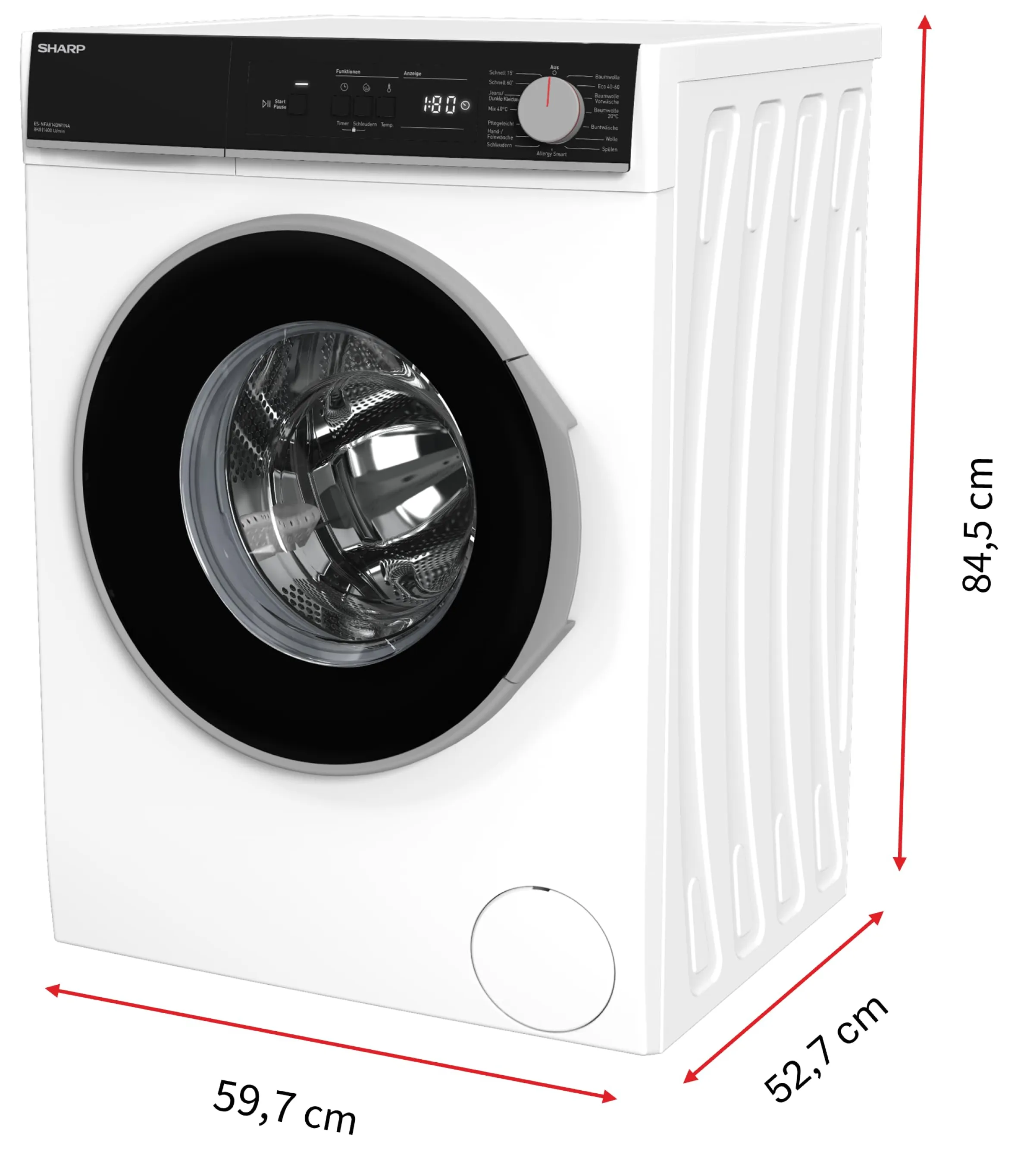 Waschmaschinen mit AquaStop anzeigenDie Sharp ES-NFA814BW1NA-DE Waschmaschine bietet innovative Technologie, zuverlässige Energieeffizienz und hohen Bedienkomfort. Mit ihrem Fassungsvermögen von 8 kg eignet sie sich ideal für Haushalte, Familien und Wohngemeinschaften. Ihr moderner Advanced Inverter Motor sorgt für einen besonders leisen und energiesparenden Betrieb – perfekt, auch wenn die Maschine im offenen Wohnbereich genutzt wird.