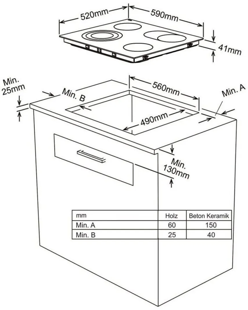 | Einbaubreite Kochfeld | 56,0 cm |