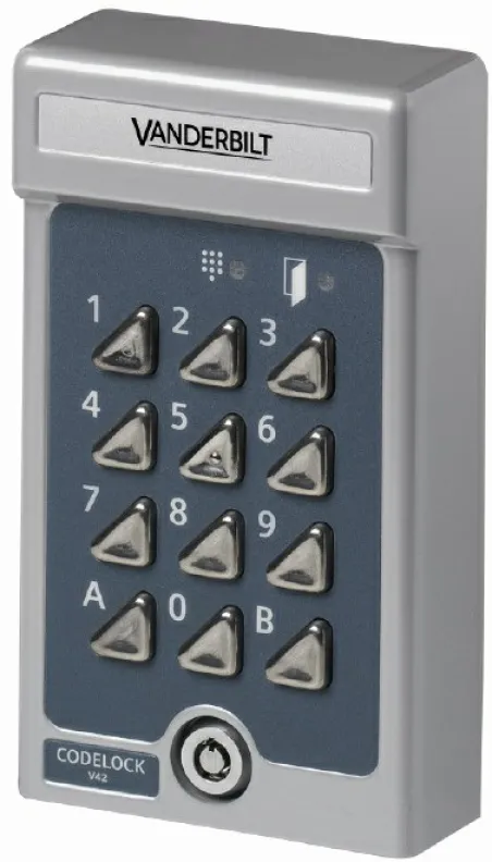 Das Vanderbilt Codeschloss V-42 ist die elegante und sichere Lösung für den kontrollierten Zutritt zu Gebäuden und Räumen – ganz ohne Schlüssel. Mit seinem kompakten Design und modernster Technik bietet dieses Codeschloss Zuverlässigkeit und Komfort sowohl für den Innen- als auch für den Außenbereich.