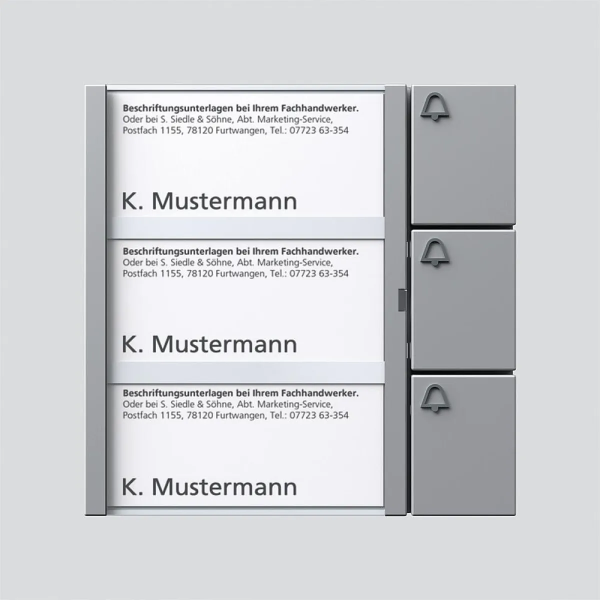 Siedle Bus-Tasten-Modul BTM 650-03 SM, 3 Klingeltasten, Namensschildtasche
