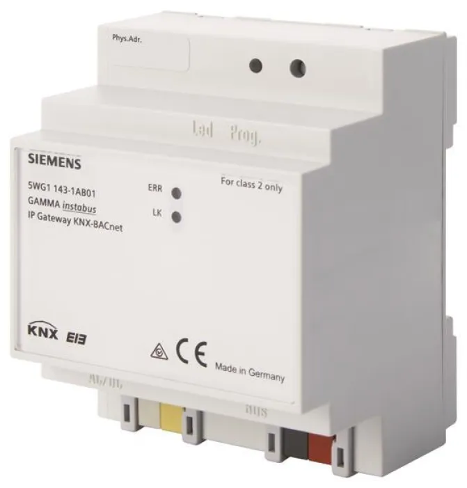 Mit dem Siemens 5WG1143-1AB01 IP Gateway KNX-BACnet N143 verbinden Sie klassische KNX-EIB-Lösungen mit der modernen BACnet-Welt. So lassen sich Heizung, Klima, Beleuchtung und viele weitere Gewerke intelligent vernetzen und komfortabel steuern – lokal und remote.