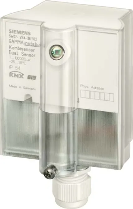 Der SIEMENS 5WG1254-3EY02 Kombisensor AP 254/02 ist die ideale Wahl für moderne KNX Smart Home und Gebäudeautomationsprojekte. Er misst zuverlässig Helligkeit und Temperatur und ermöglicht so eine effiziente Steuerung von Jalousien, Beleuchtung und Heizung – für mehr Komfort, Energieeffizienz und Sicherheit.