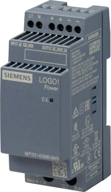Die Siemens LOGO!Power 24V/1,3A 6EP3331-6SB00-0AY0 ist die ideale Lösung für eine zuverlässige und effiziente Stromversorgung in Steuerungs- und Automatisierungsprojekten. Das kompakte Mini-Netzgerät überzeugt durch hohe Leistung auf kleinstem Raum und maximale Flexibilität bei der Installation. Ob im Schaltschrankbau, in der Gebäudeautomation oder in industriellen Anlagen – mit LOGO!Power setzen Sie auf eine sichere 24V-Gleichstromversorgung.