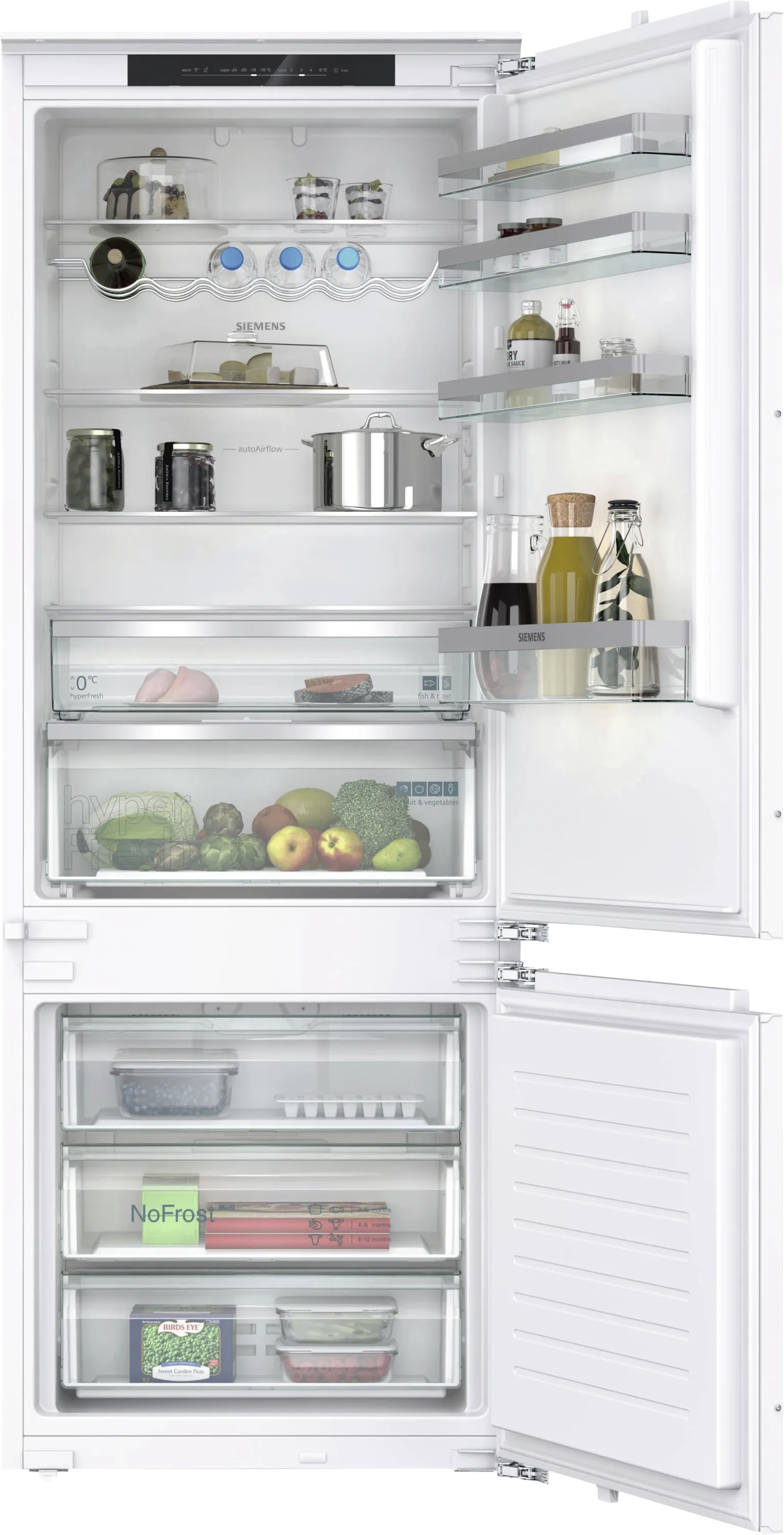 Die Siemens KB96NVFE0 iQ300 Einbau-Kühl-Gefrierkombination bringt moderne Frischetechnologie, großzügigen Stauraum und smarte Steuerung in Ihre Küche. Mit 383 Litern Nutzinhalt, innovativer noFrost-Technologie und Home Connect-Funktion ist dieses Gerät die ideale Wahl für Familien, Mehrpersonenhaushalte und alle, die Wert auf Komfort und Effizienz legen.