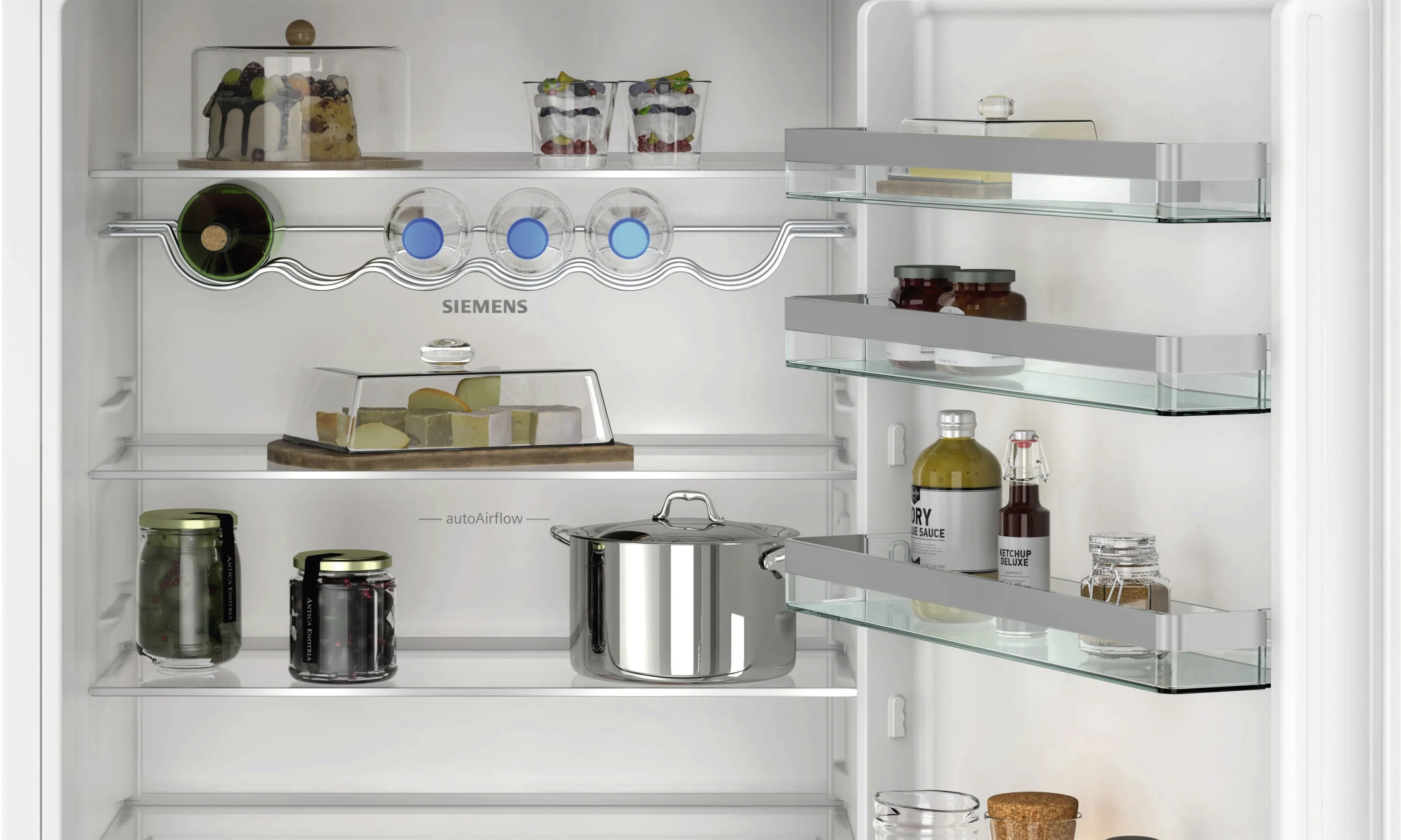 Die Siemens KB96NVFE0 fügt sich mit ihrem klaren, weißen Design und der Festtür-Integration nahtlos in jede Einbauküche ein. Der wechselbare Türanschlag und die flexible Montage machen sie besonders anpassungsfähig – perfekt für offene Küchenkonzepte oder große Haushalte.