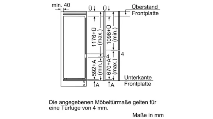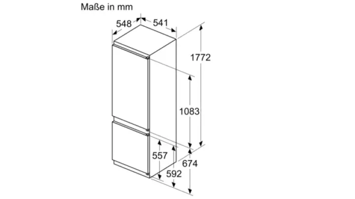 Die vollintegrierbare Kühl-Gefrierkombination verschwindet dezent hinter der Möbelfront und passt sich jeder modernen Küche an. Mit einem Gesamtnutzinhalt von 271 Litern (201 l Kühlteil, 70 l Gefrierteil) bietet sie ausreichend Stauraum für frische Lebensmittel und Vorräte. Die mitgelieferte Snackbox KS10Z010 mit fünf herausnehmbaren Schalen sorgt für Ordnung und hygienische Trennung von Snacks oder Meal-Prep-Zutaten.