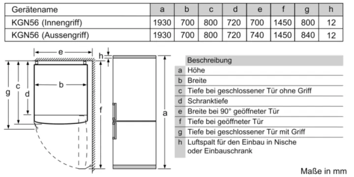 | Gerätetyp | Kühl-/Gefrierkombinationen (Gefrierteil unten) |