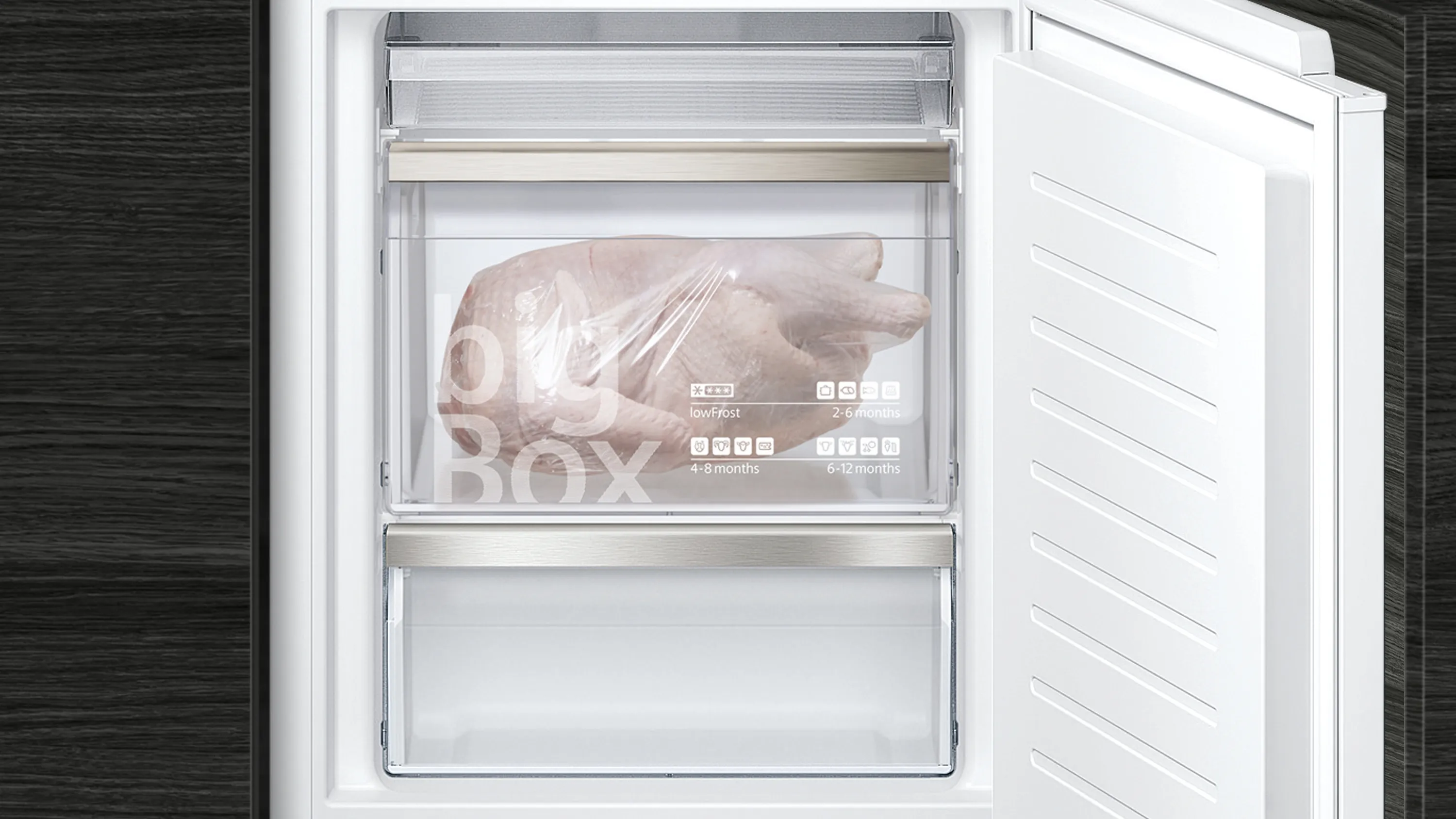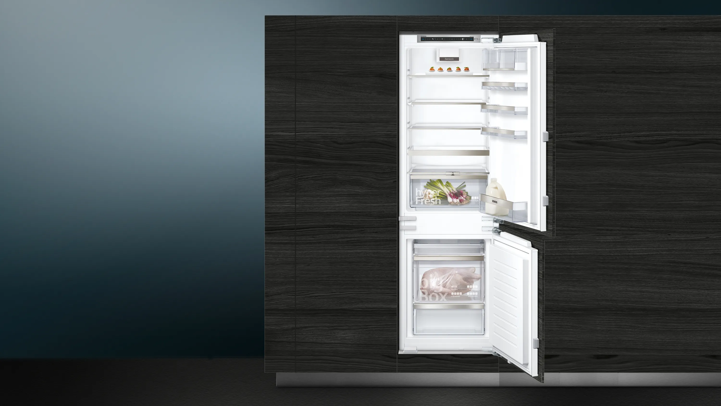 iQ500 Einbau-Kühl-Gefrier-Kombination - coolEfficiency Einbau-Kühl-Gefrier-Kombination mit hyperFresh plus Box für bis zu 2 mal länger frisches Obst und Gemüse sowie Home Connect: Steuerung und Zugriff auf Ihren Kühlschrank, egal wo Sie gerade sind – mit der einfach zu bedienenden Home Connect App.