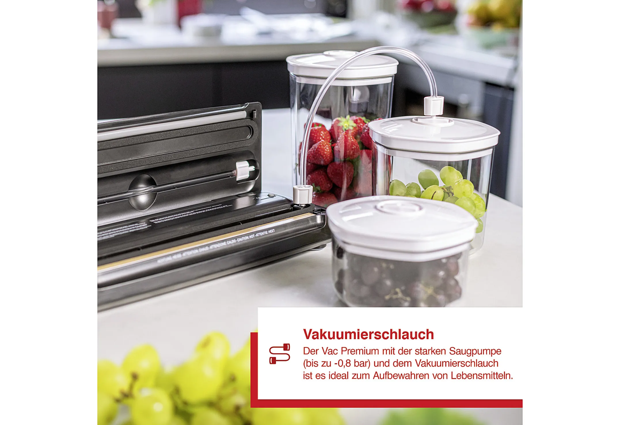 Das Komplett-Set eignet sich für Familien, Singles und ambitionierte Hobbyköche. Überzeugen Sie sich von der erstklassigen Verarbeitungsqualität und Vielseitigkeit dieses Vakuumiergeräts – für eine moderne, bewusste Küche.