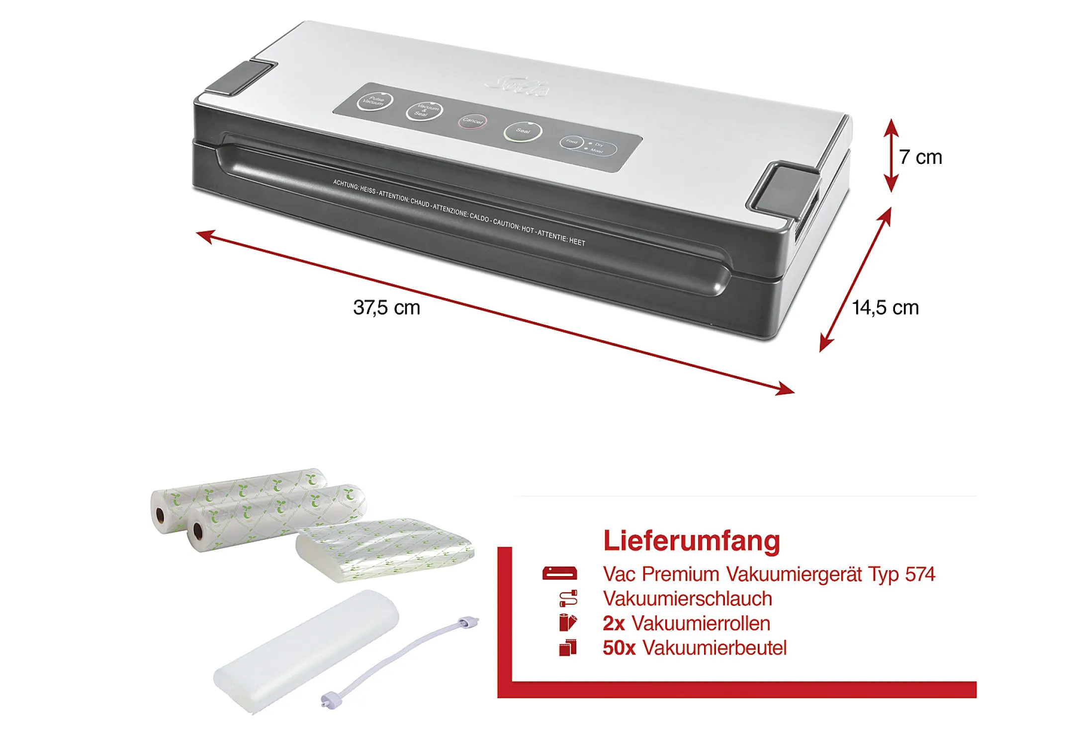 Solis Vakuumiergerät Premium 574, Vakuumierer für Lebensmittel, Pulse-Funktion