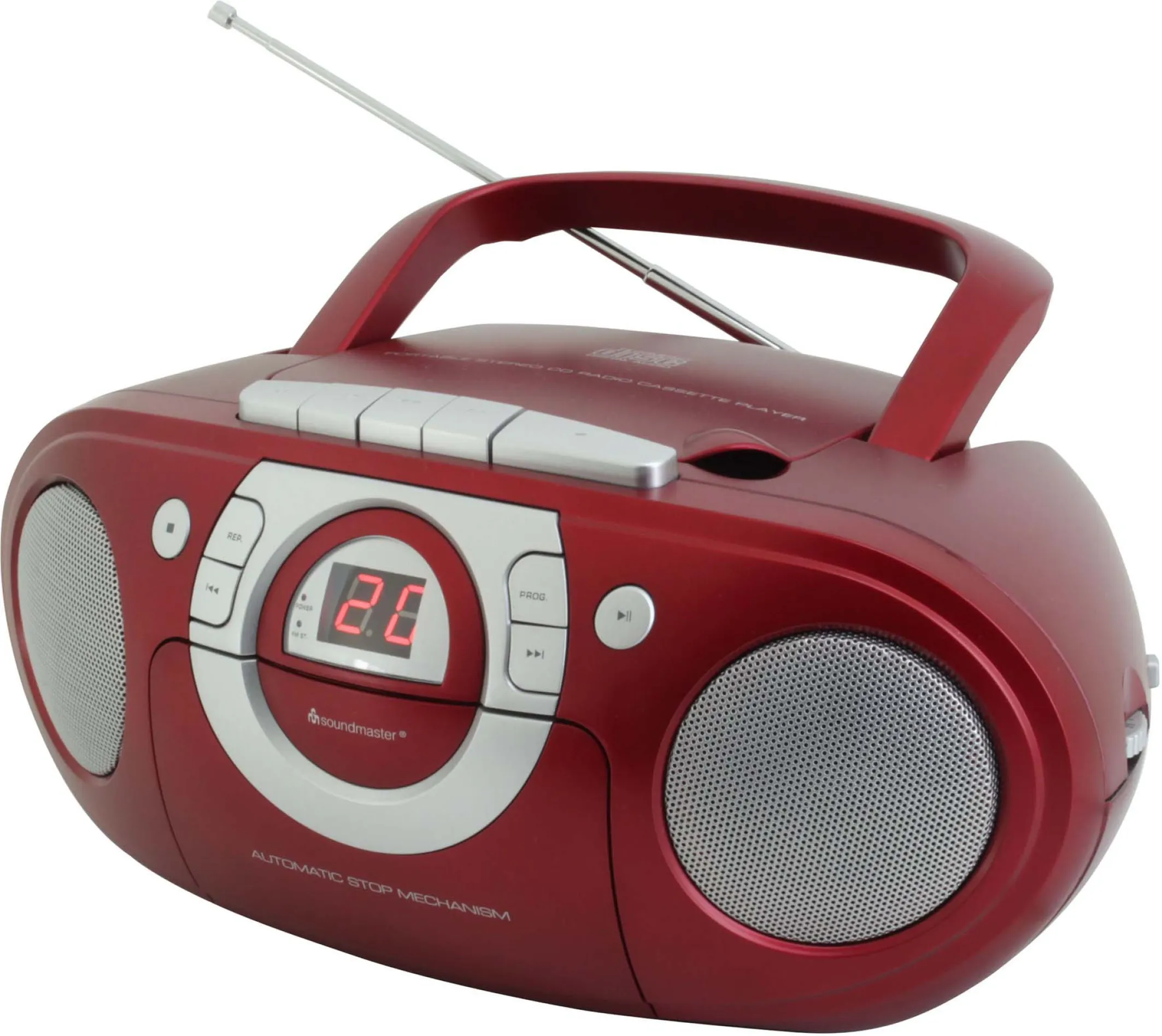 Mit der Soundmaster SCD5100RO CD-Boombox erleben Sie flexible Musikvielfalt für Zuhause, unterwegs, beim Camping oder im Kinderzimmer. Kombinieren Sie klassischen Kassetten-Sound, zeitloses UKW-Radio und modernen CD-Komfort in einem stylischen Gerät – und das in auffälligem, trendigem Rot.