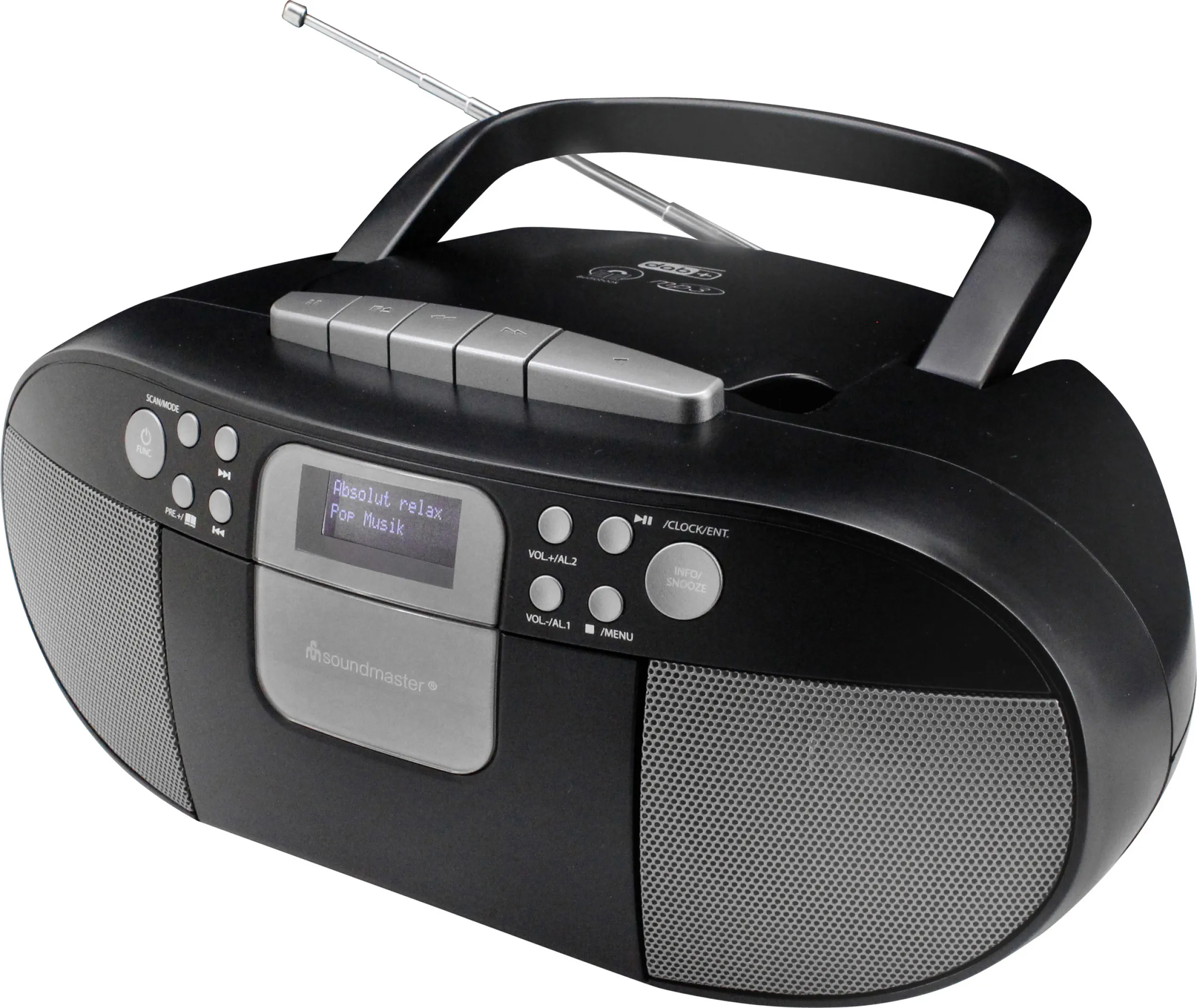 Die Soundmaster SCD7800SW DAB+ Boombox vereint moderne Technik mit einfacher Bedienung und bietet Musikgenuss für die ganze Familie. Dieses kompakte All-in-One-Radio spielt Musik von CD, Kassette, USB-Stick oder Radio und eignet sich ideal für Zuhause, das Kinderzimmer oder unterwegs.