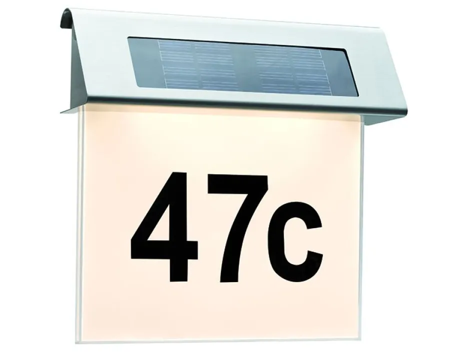 Verlassen Sie sich auf zuverlässige LED-Außenbeleuchtung mit Solarenergie – für eine gut sichtbare Hausnummer und ein sicheres Zuhause, auch nach Sonnenuntergang.