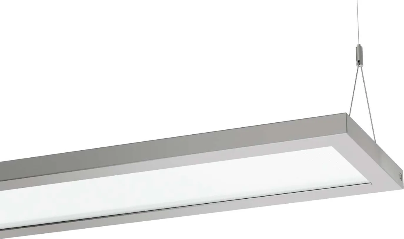 Pendelleuchte SL629 mit Hochleistungs-LED. Leuchtenleistung 31W. Universell einsetzbare Langfeldleuchte für den Office-Bereich. Klare Formsprache und zurückhaltende Optik unterstützen eine harmonische Einbindung in die vorhandene Architektur. Besondere Eignung für großflächige Büro- und Bildungseinrichtungen durch einfache Wartung, große technische Variabilität und ausgewogenes Preis-Leistungs-Verhältnis. Leuchtengehäuse aus Stahlblech. Light-Engine mittels Einschubmechanik auswechselbar. Kratzfeste Oberflächenausführung durch hochwertige Pulverbeschichtung nach Prismatische Lichtoptik für effiziente Lichtstreuung, Blendungsminimierung und eine hohe Gleichmäßigkeit. Integrierter hochtransmittierender Lichtleiter. Direkt strahlend. Homogene Leuchtdichteverteilung über die gesamte Lichtaustrittsfläche (LED Sidelight-Technologie). BAP-geeignet nach DIN EN 12464-1.