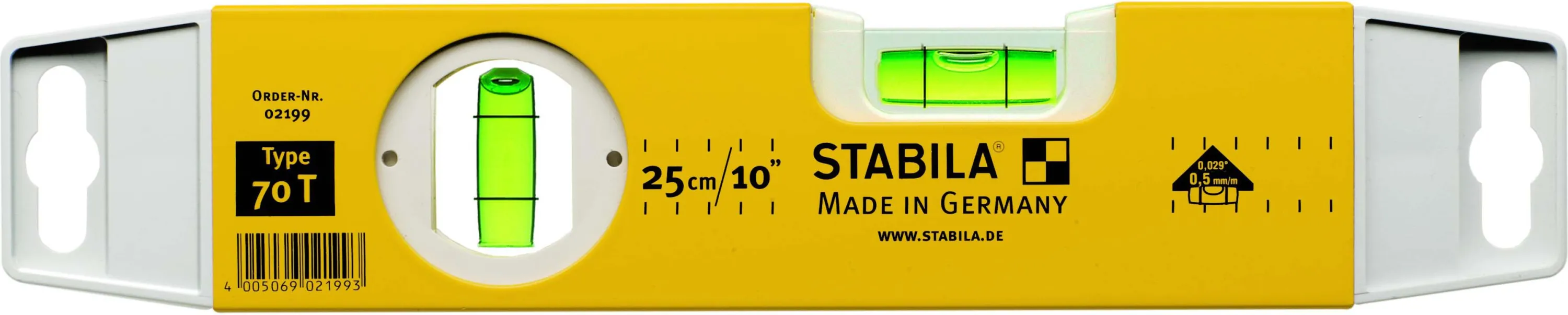 Überzeugen Sie sich selbst von der STABILA Torpedo-Wasserwaage Type 70 T, 25 cm – Ihrer hochwertigen Kompakt-Wasserwaage für präzises Arbeiten auf engstem Raum.