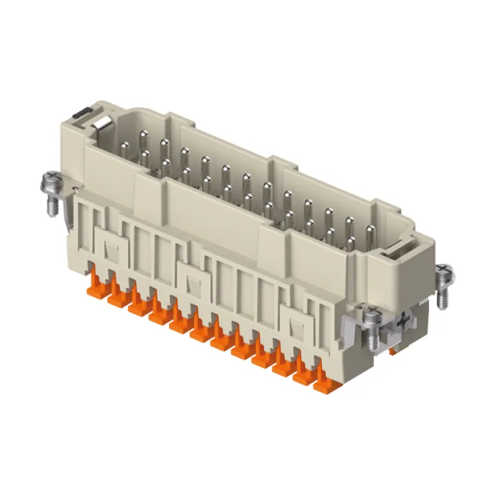 Der ILME Stifteinsatz CSHM 24 ist ein moderner Kontakteinsatz für Rechtecksteckverbinder, der durch seine innovative SQUICH® Schnellanschlusstechnik überzeugt. Optimiert für den industriellen Einsatz, bietet dieser 24-polige Stifteinsatz maximale Zuverlässigkeit und sorgt dank werkzeuglosen Anschlusses für besonders einfache, schnelle und sichere Verdrahtung.