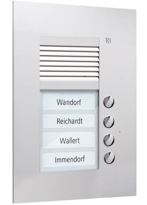 Fest installierte Klingeltasten und geschützte Technik machen die TCS PUK04/1-EN besonders alltagstauglich und bieten einen zuverlässigen Zugangskomfort für Bewohner und Besucher. Das reduzierte, stilvolle Design fügt sich in jede moderne Architektur ein – ganz gleich, ob Sie sanieren, modernisieren oder neu bauen.