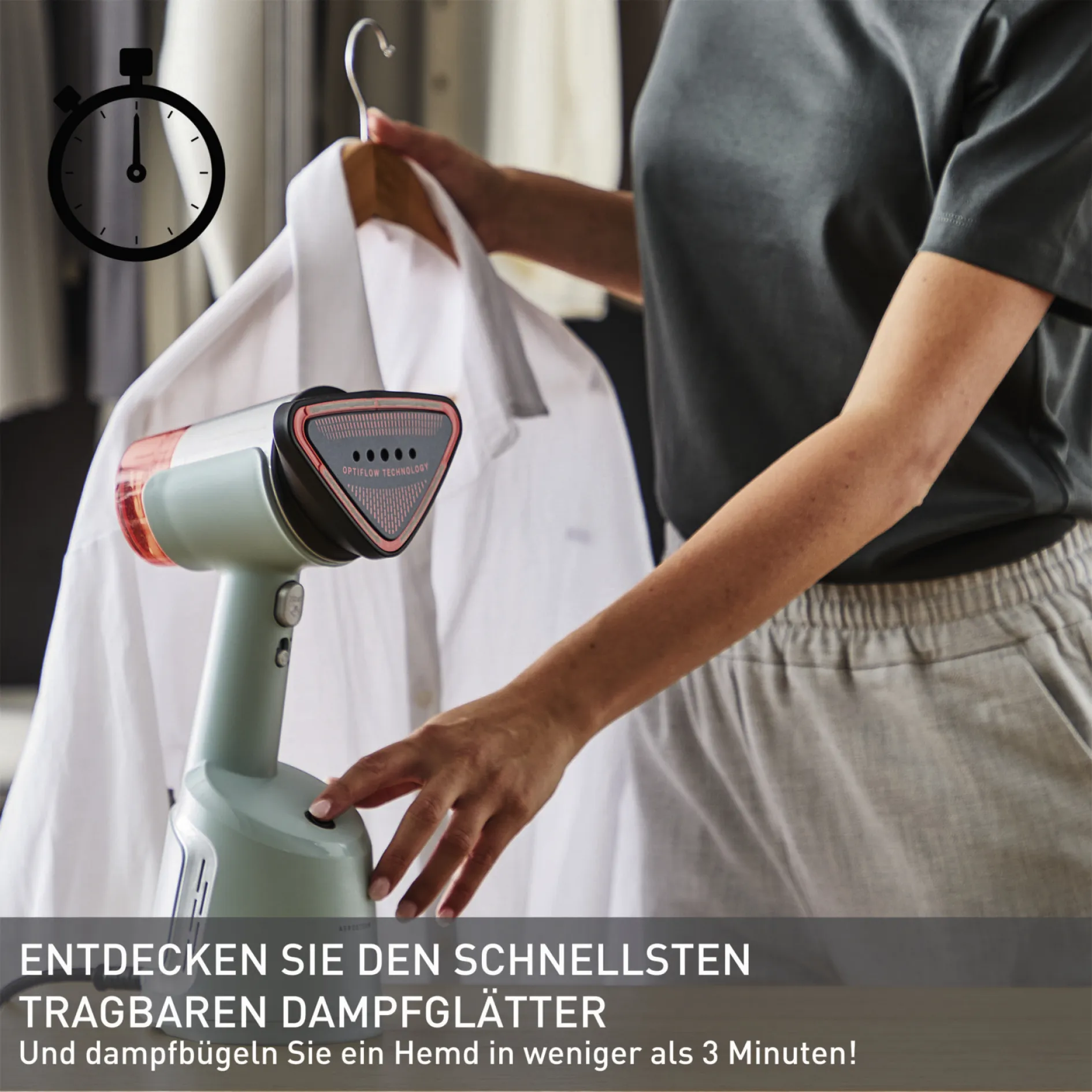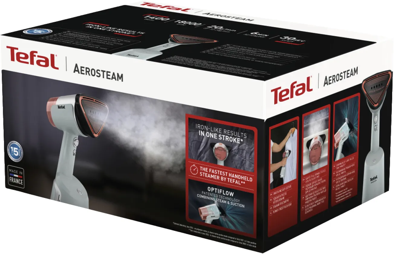Der Tefal DT9814 AeroSteam Dampfglätter macht müheloses Glätten zum Kinderspiel – ganz ohne Bügelbrett. Mit seiner innovativen OptiFlow-Technologie glättet er Ihre Kleidung schonend, schnell und zuverlässig. Ideal für alle, die Wert auf gepflegtes Aussehen und effiziente Lösungen legen!