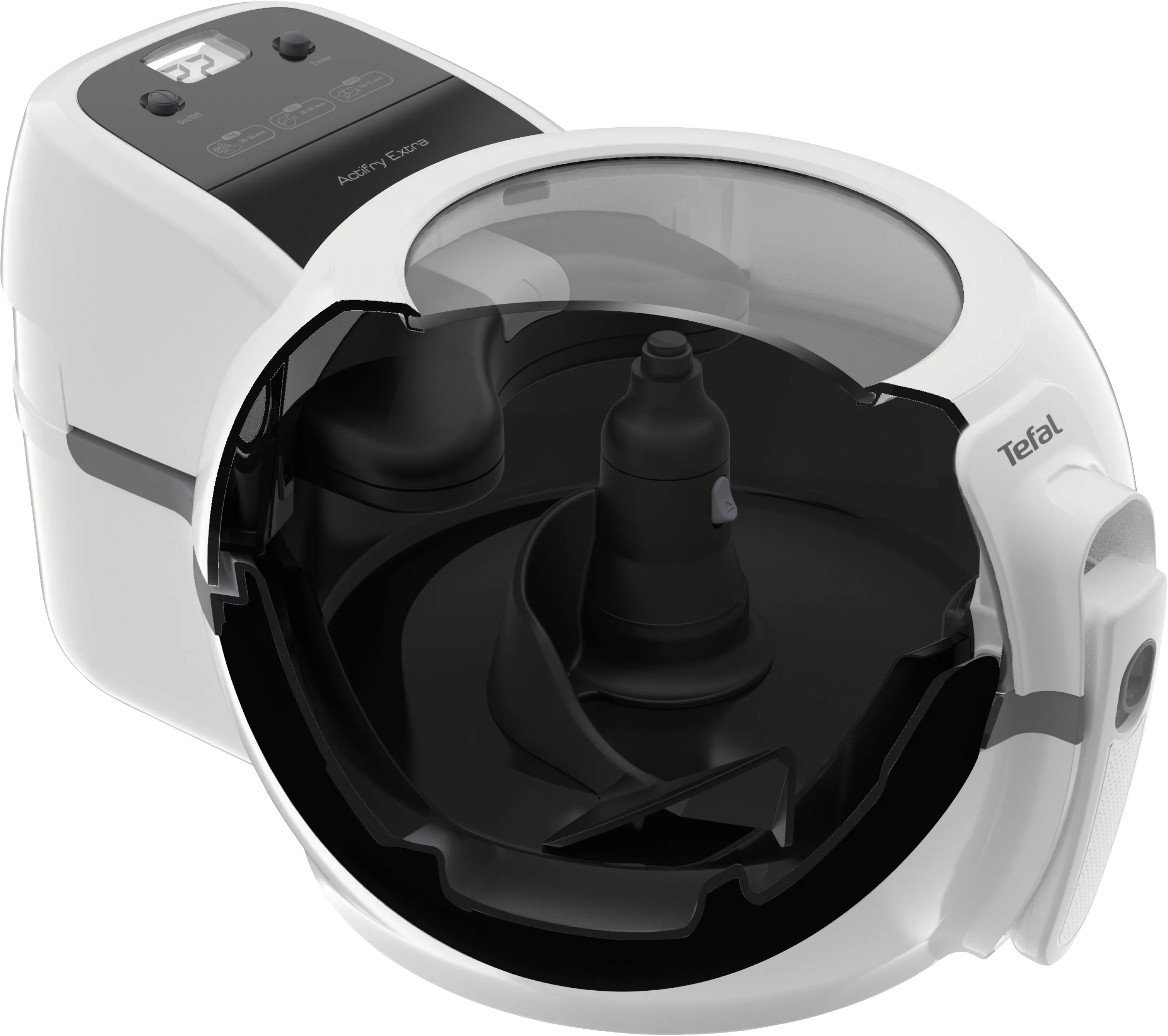 Heißluft-Fritteuse, rund, Display, Fassungsvermögen: 1,2 kg, einstellbare Temperatur, maximal: 220 °C, rotierender Rührarm, Timer, wärmeisoliertes Gehäuse, 1.500 Watt