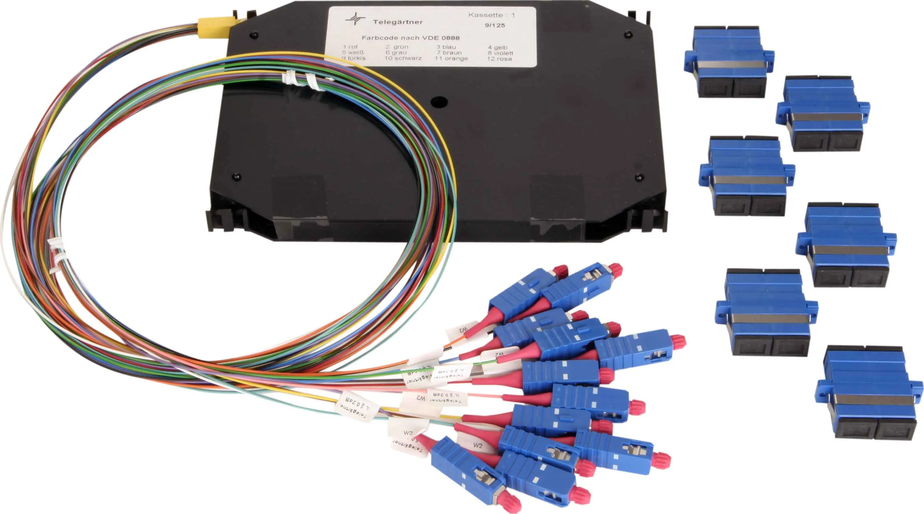 Telegärtner LWL Erweiterungs-Set OM3, Spleißkassette SC-D Kupplung 6x, Aderpigtail 50/125