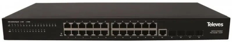 Der TELEVES SWI2-24 Tischswitch ist ein moderner, professioneller Layer 2+ Ethernet Switch mit 24 Gigabit-Ethernet-Ports und 4 schnellen SFP-Slots für Glasfaser-Verbindungen. Maximale Performance und Flexibilität machen diesen Switch zur idealen Lösung für anspruchsvolle Netzwerkumgebungen im Wohnungs- und Gewerbebau, besonders im Zusammenspiel mit WaveData-AccessPoints.