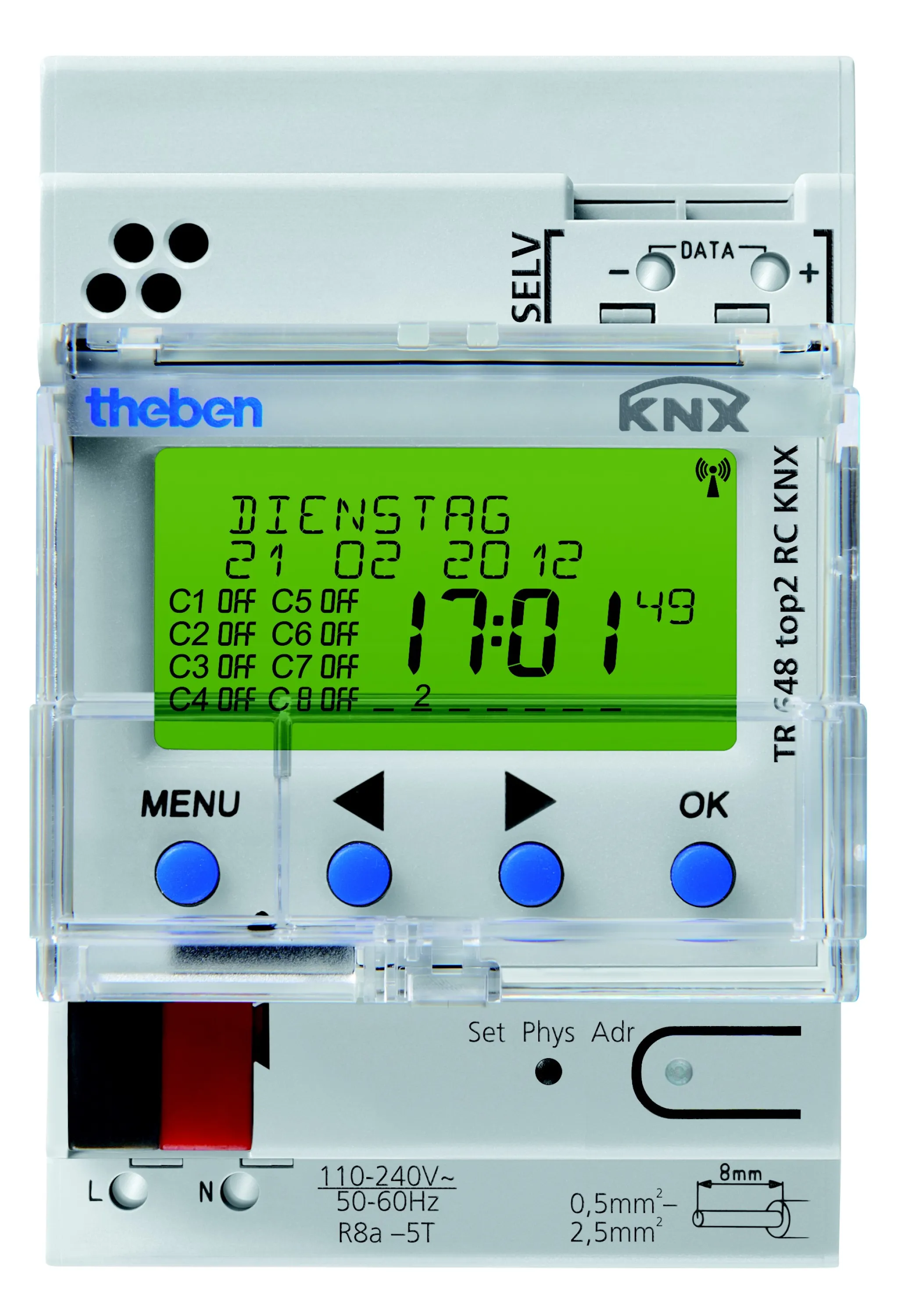 Die Theben Digitale Zeitschaltuhr TR 648 top2 RC KNX ist die smarte Lösung für präzise Zeitsteuerung in modernen KNX-Gebäuden. Mit 8 unabhängig steuerbaren Kanälen, umfangreichen Jahres- und Astroprogrammen sowie flexibler Programmierung sorgt sie für effizientes Energiemanagement und zuverlässige Automatisierung – ideal für Wohn- und Gewerbeobjekte.