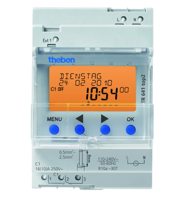 Die Theben TR 641 top2 bietet bis zu 800 frei programmierbare Schaltzeiten und unterstützt Impuls-, Zyklus- sowie Ablauf-Timer. So steuern Sie Ihre Technik nicht nur nach Uhrzeit, sondern auch nach Sonnenstand – für maximale Energieeinsparung und Komfort. Typische Anwendungen sind Straßen-, Hof- und Gartenbeleuchtung, Schaufenster, Treppenhäuser, Lüftungs- und Heizsysteme, Parkhäuser oder Industriehallen.