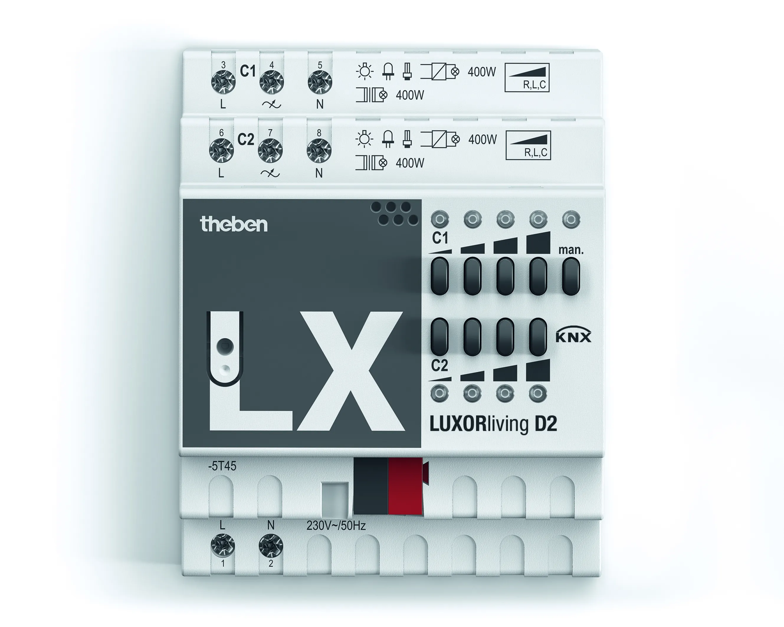 Der THEBEN LUXORliving D2 Universal-Dimmaktor 2-fach bringt intelligente Lichtsteuerung in Ihr Zuhause. Mit einem Dimmbereich von 0–100 % sorgt er für optimale Lichtverhältnisse und ist vielseitig einsetzbar – ideal für moderne Smart Home Lösungen mit dem LUXORliving System.