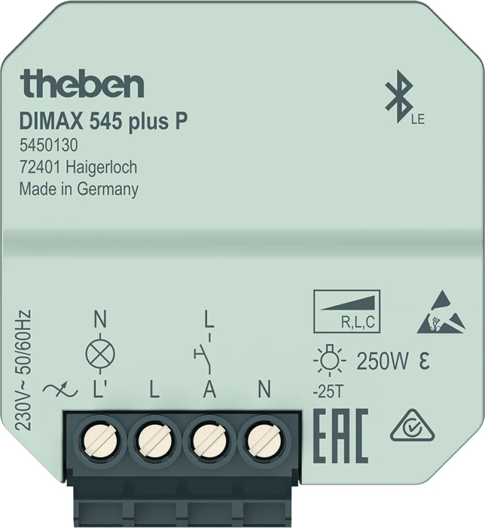 Der THEBEN DIMAX 545 plus P Fernschaltdimmer revolutioniert Ihre Beleuchtung: Mit innovativer App-Steuerung per Bluetooth, automatischer Lasterkennung und umfangreichen Zeit- sowie Astrofunktionen genießen Sie maximalen Bedienkomfort für Ihre Wohn- oder Arbeitsumgebung. Perfekt für alle dimmbaren LEDs und verschiedene Lastarten sorgt dieser smarte Unterputz-Dimmer für individuelle Lichtstimmungen in modernen Smart Homes.