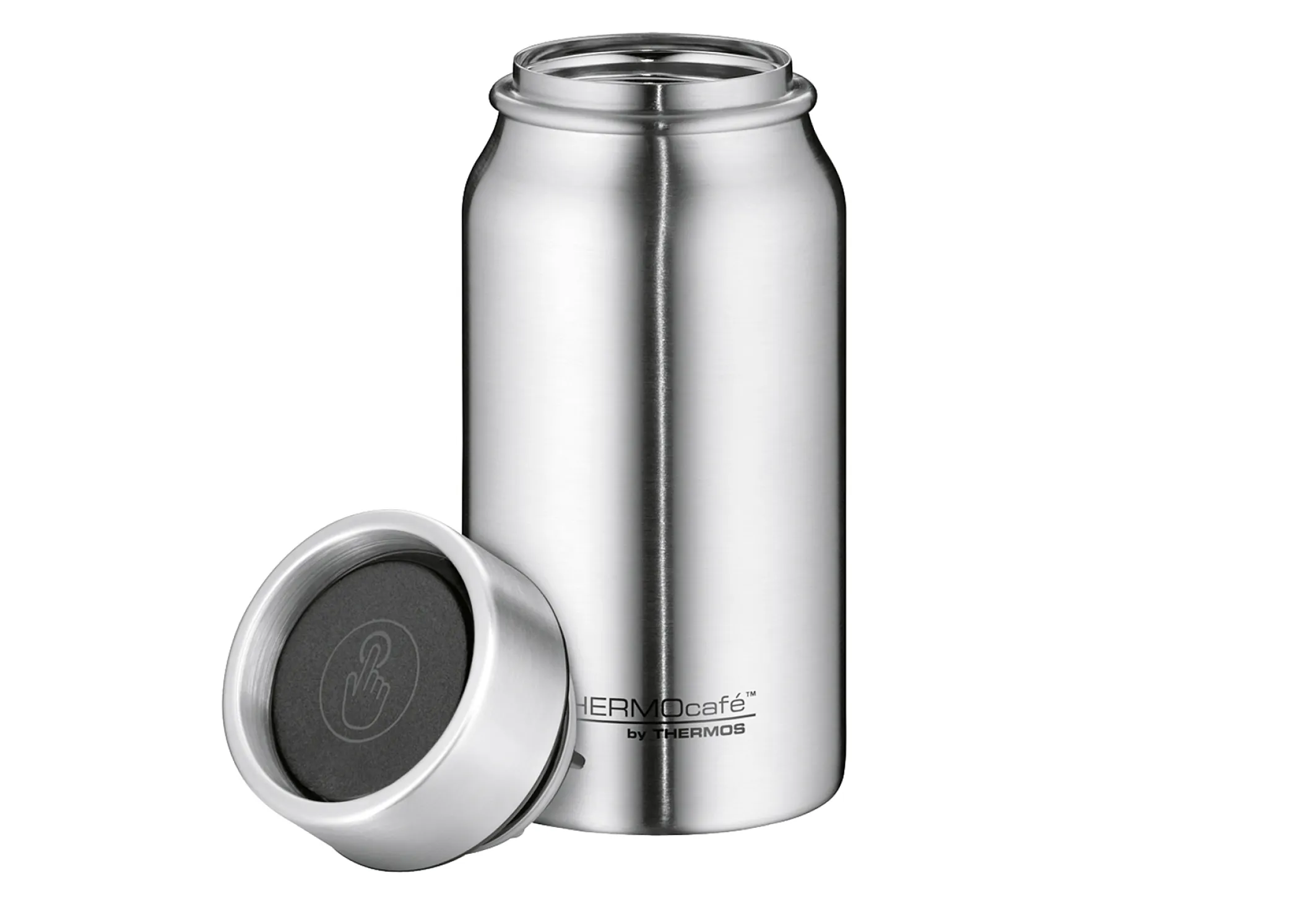 Genießen Sie Ihren Kaffee oder Tee jederzeit und überall: Der THERMOcafé by THERMOS TC DRINKING MUG aus mattem Edelstahl hält Ihre Getränke bis zu 8 Stunden heiß oder 16 Stunden kalt – perfekt für unterwegs, im Büro oder beim Sport. Das schlanke, moderne Design und die durchdachten Funktionen machen diesen Thermobecher zum idealen Begleiter für Ihren Alltag.