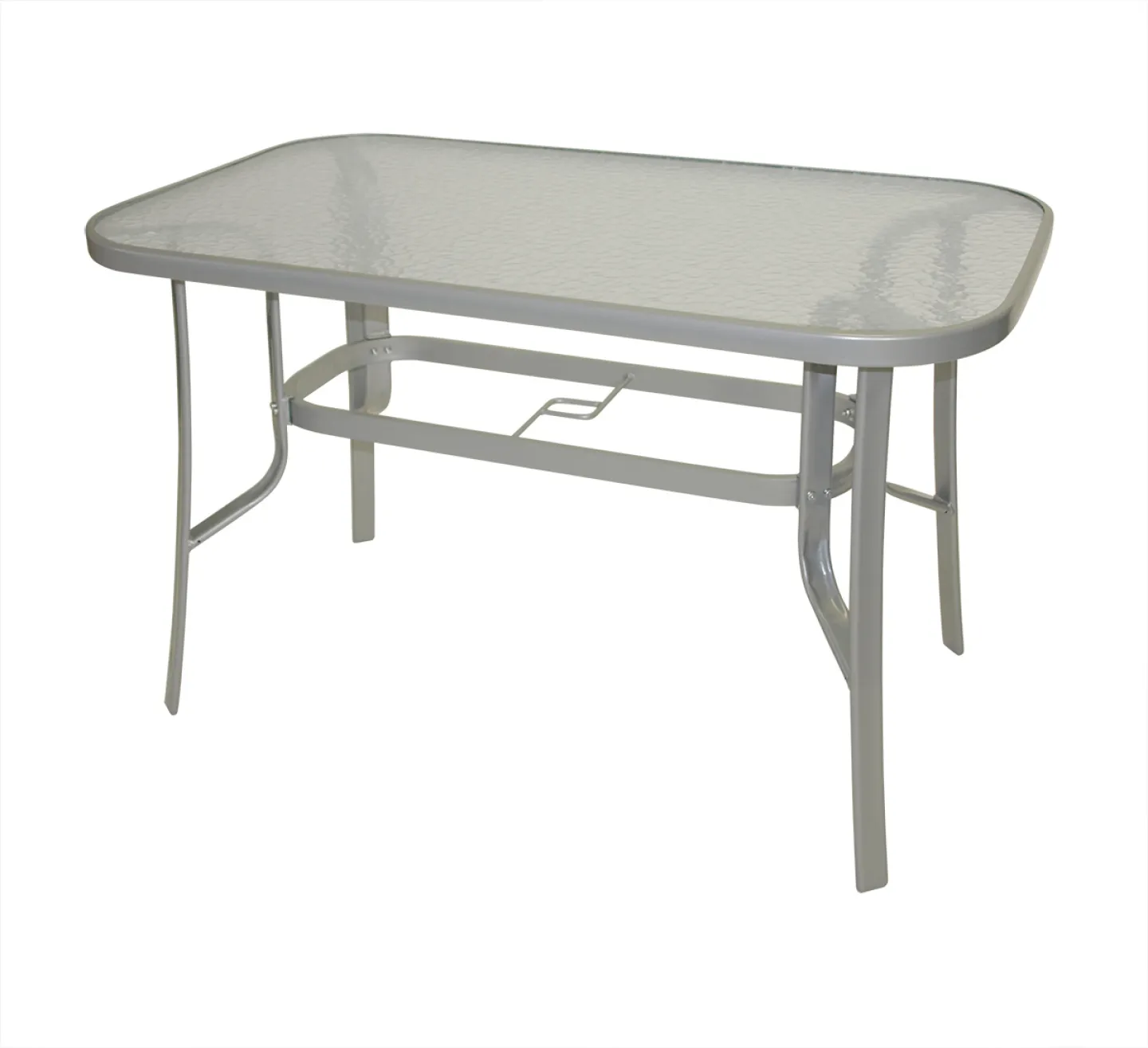 Der moderne Gartentisch mit einem stabilen, silberfarben pulverbeschichteten Stahlgestell und einer stilvollen Glasplatte mit edler Strukturoptik vereint Design, Stabilität und Funktionalität für Ihren Outdoor-Bereich. Ob für den gemütlichen Frühstückskaffee zu zweit auf dem Balkon oder als eleganter Treffpunkt auf der Terrasse – mit diesem Tisch schaffen Sie eine stilvolle Atmosphäre.