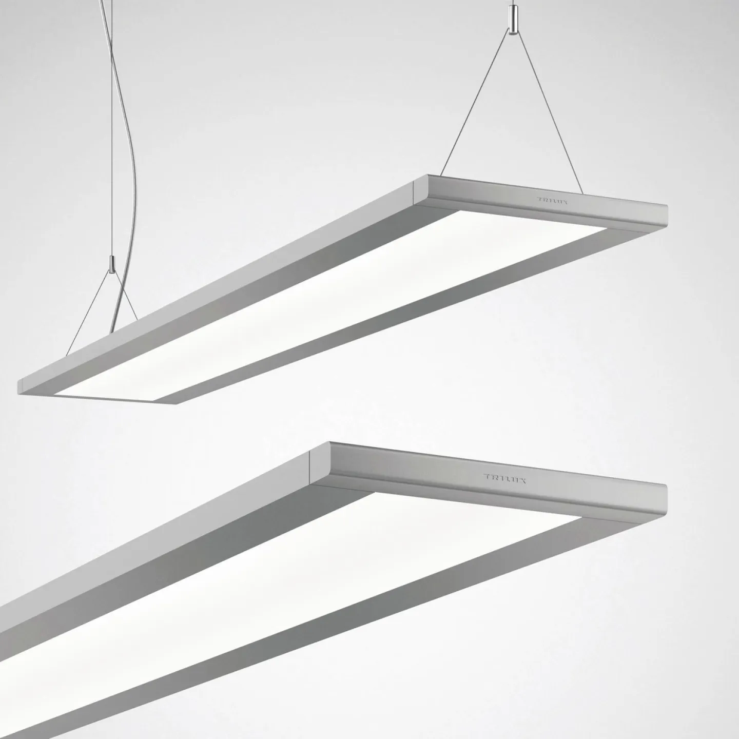 Dank direkter und indirekter Lichtverteilung erzeugt die TRILUX Pendelleuchte ein ausgewogenes, blendfreies Licht – perfekt für Bildschirmarbeitsplätze gemäß EN 12464-1. Die mikroprismatische Abdeckung sorgt für eine gleichmäßige Ausleuchtung ohne harte Schatten und gewährleistet eine angenehme Arbeitsatmosphäre. Ob als Einzelleuchte oder im Lichtband: Die hochwertige Aluminiumleuchte überzeugt durch moderne Technik und erstklassige Verarbeitung.