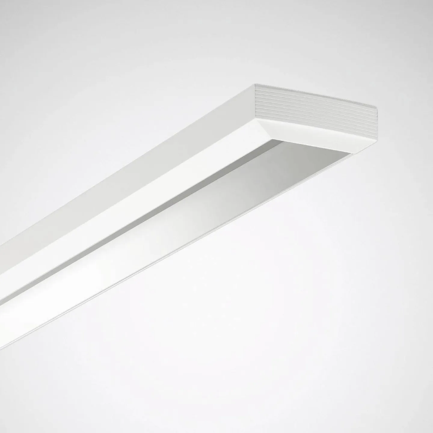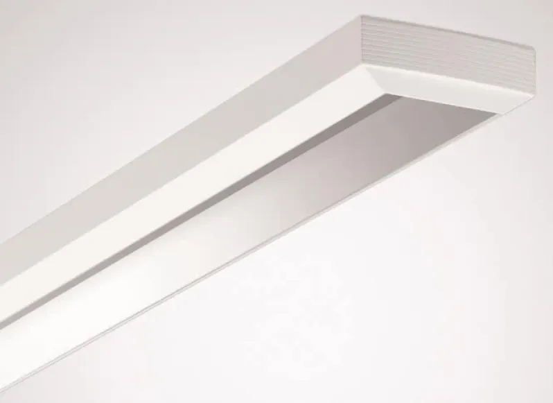 Die Leuchte überzeugt durch ihr schlankes, funktionales Design und hochwertige Materialien. Das Gehäuse besteht aus pulverbeschichtetem Stahl (weiß, ähnlich RAL 9016) und ist besonders widerstandsfähig und pflegeleicht. Dank der werkzeuglosen Rasterbefestigung ist die Montage schnell und einfach erledigt.