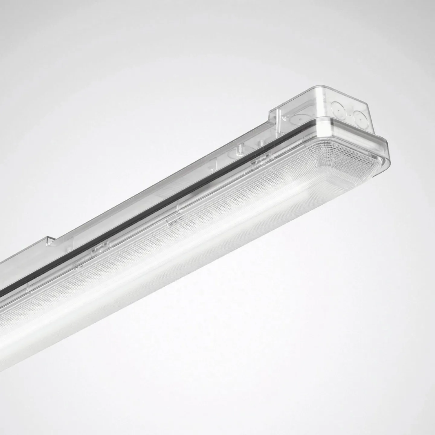 Die TRILUX Feuchtraumleuchte lässt sich einfach in bestehende DALI-Systeme integrieren und bietet Durchgangsverdrahtung für eine schnelle Installation. Die austauschbare LED-Lichtquelle und das elektronische Betriebsgerät sorgen für eine lange Lebensdauer von bis zu 70.000 Stunden (L70/B50 bei 25 °C). Mit einem UGR-Wert von 25 wird Blendung minimiert und angenehme Sichtverhältnisse geschaffen.