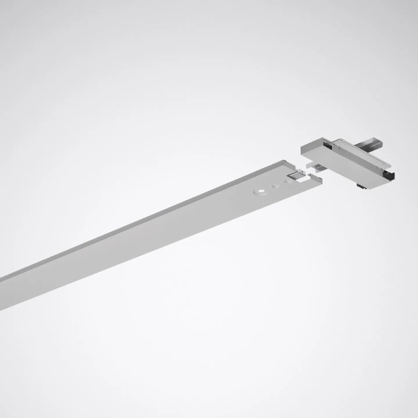 Lichtbandkupplung für Deckenleuchten LuceoS D2. Mechanischer und elektrischer Verbinder zur Gliederung eines Deckenanbau-Lichtbands. Breite Ausführung. Für Deckenanbauleuchten der Baureihe LuceoS D2 . Mit 5-adriger Durchgangsverdrahtung 1,5 mm². Aus Stahlblech, silbergrau pulverbeschichtet Maße (L x B): 1580 mm x 240 mm, H = 53 mm.