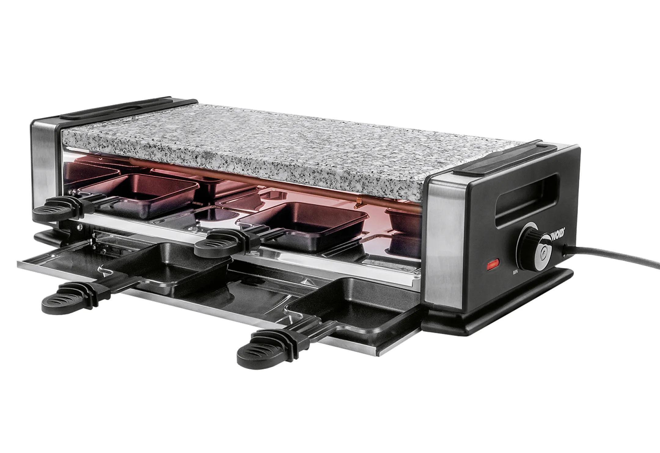 UNOLD Raclette Grill 48760 Delice Basic, 8 Personen, Naturstein-Grillplatte 38x19,5 cm