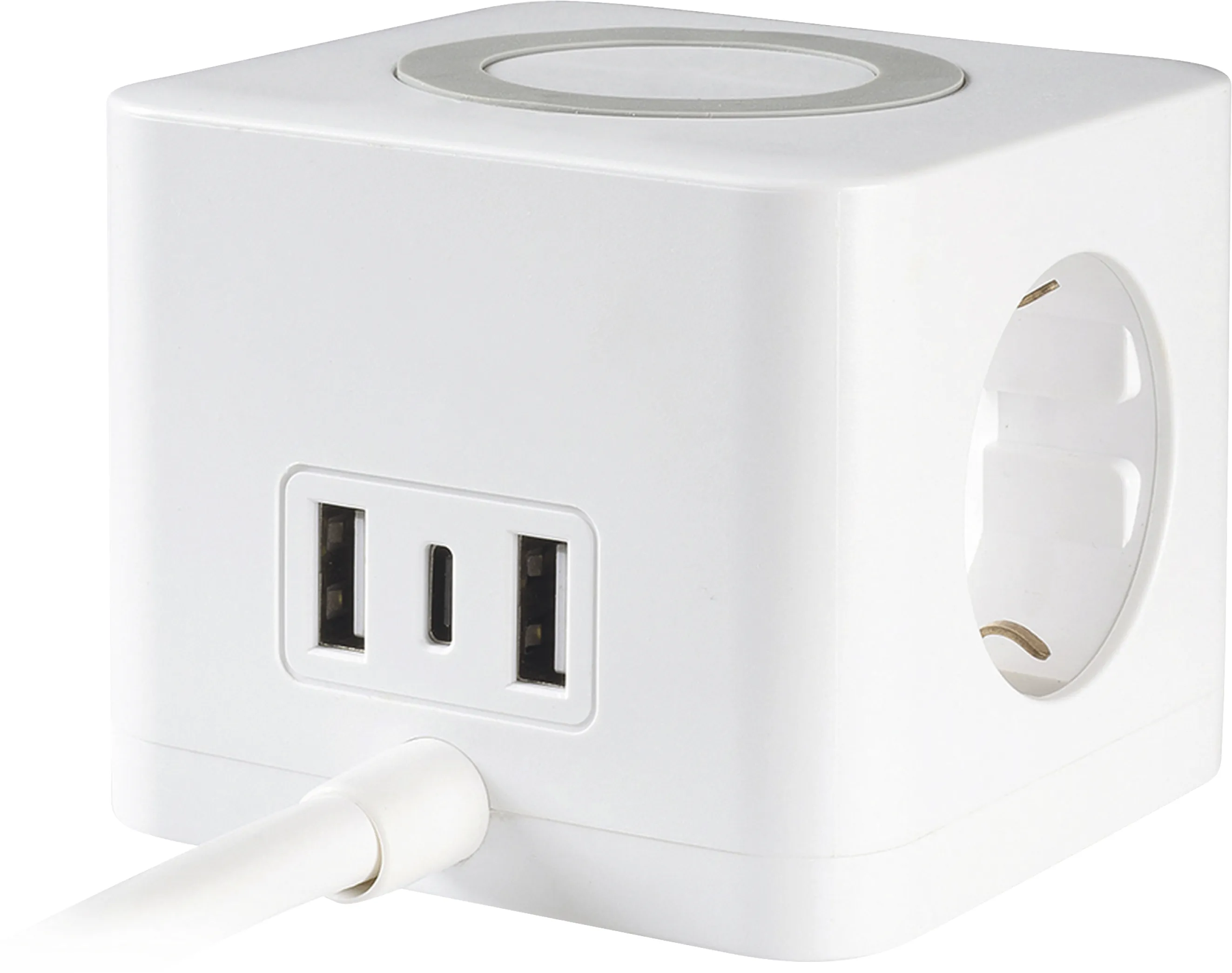 Maximale Flexibilität für Zuhause, das Büro oder unterwegs: Mit dem 3-fach Steckdosenwürfel m. 2x USB-A + 1x USB-C in elegantem Weiß von smartgoods.de bringen Sie ordentlich Power an jeden Platz. Dank drei Schuko-Steckdosen, zwei USB-A Anschlüssen und einem modernen USB-C Port laden Sie Ihre Geräte kompakt, sicher und besonders komfortabel – alles mit nur einem Würfel!