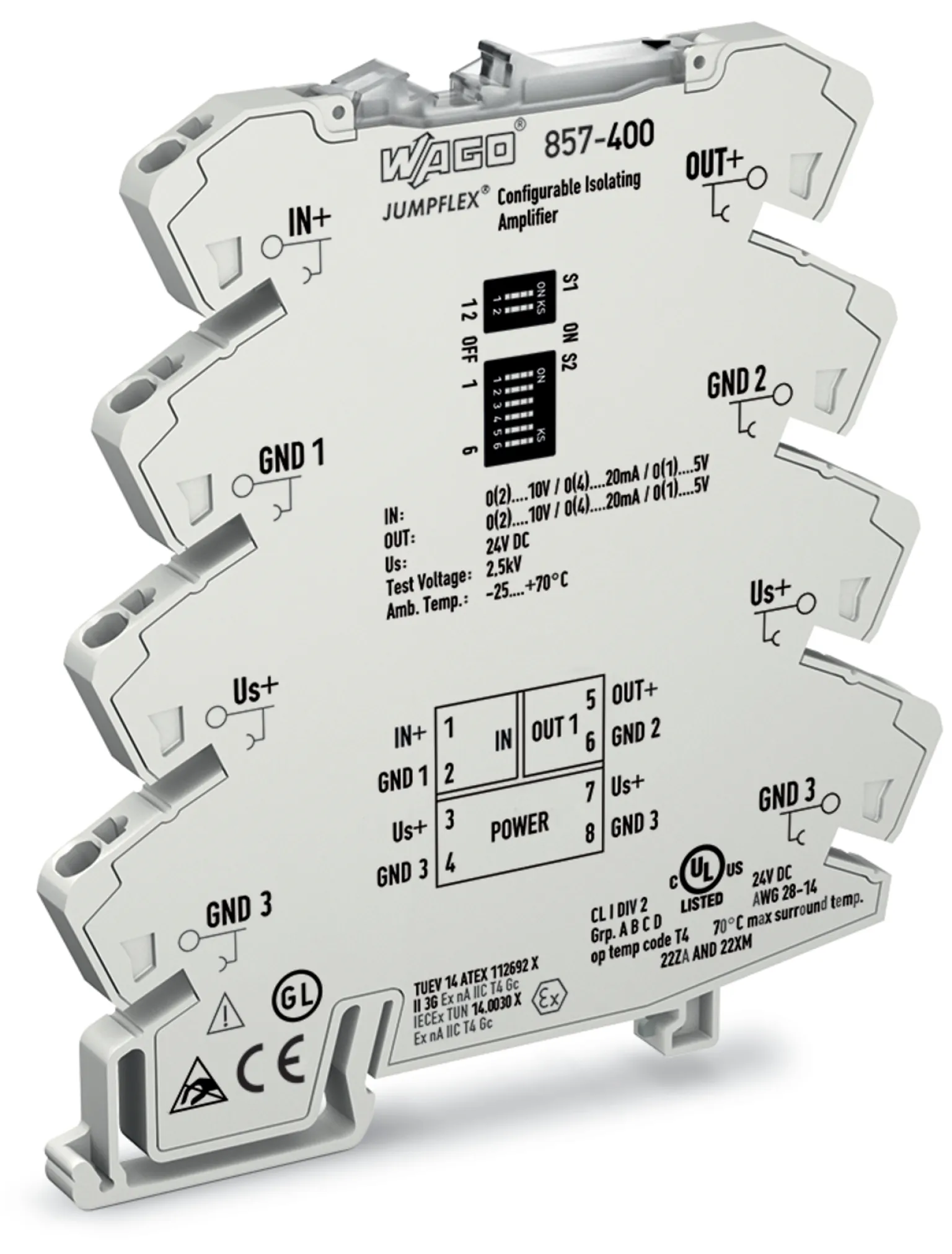 Der WAGO 857-400 Trennverstärker sorgt zuverlässig für die präzise galvanische Trennung und Verstärkung analoger Strom- und Spannungssignale in Ihrer Steuerungs- und Automatisierungsumgebung. Mit innovativer Technik, minimalem Platzbedarf und flexibler Konfiguration ist dieses Modul optimal für anspruchsvolle Mess-, Steuerungs- und Regelaufgaben – überall dort, wo höchste Signalqualität sowie sichere Potentialtrennung gefragt sind.