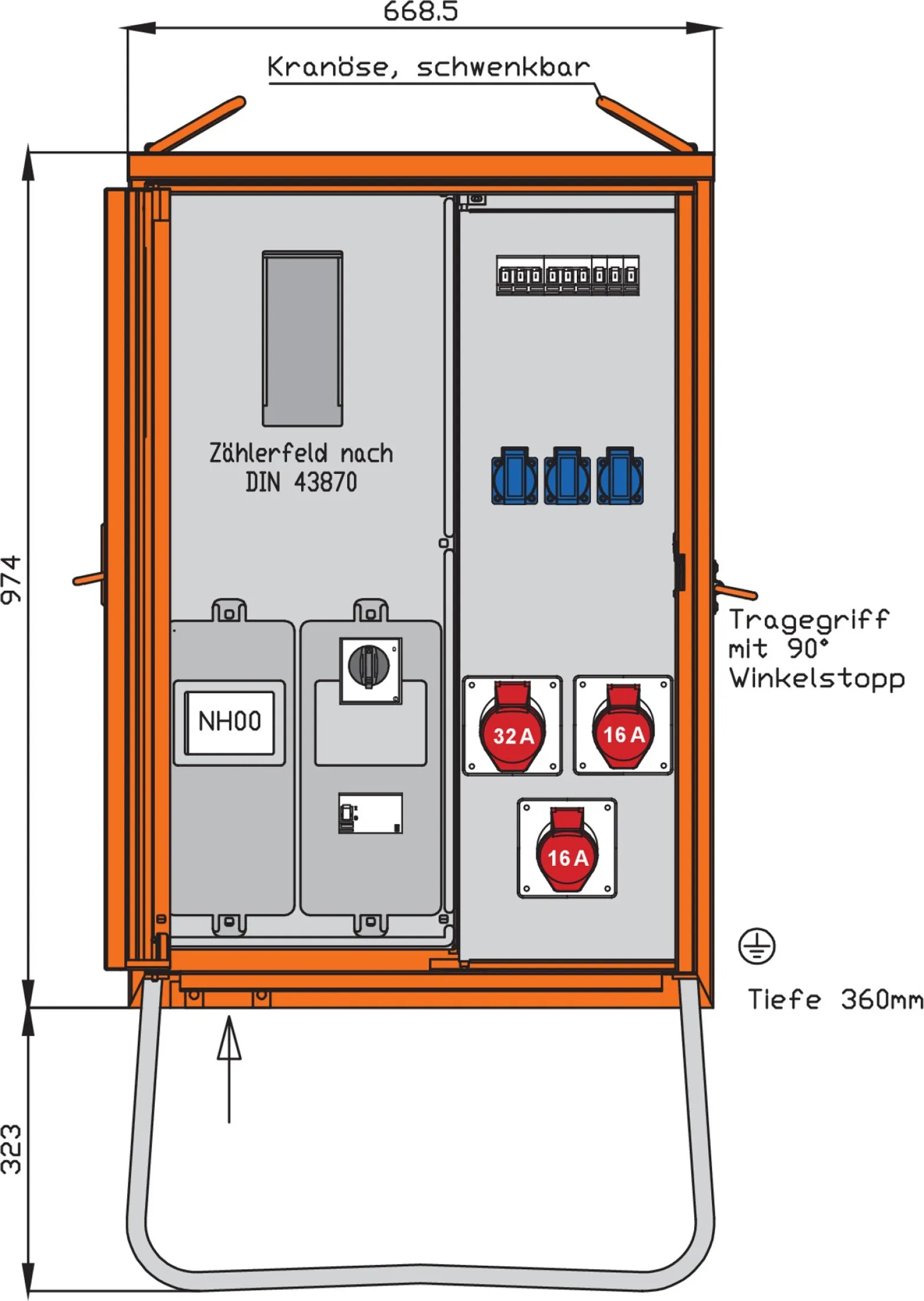 Der WALTHER WAV0100BR1 Anschlussverteilerschrank ist die professionelle Lösung für Baustromversorgung, Energieverteilung und Verbrauchsmessung. Mit seinem robusten, verzinkten Stahlblech-Gehäuse und der auffälligen Lackierung in RAL 2004 (Reinorange) eignet er sich ideal für anspruchsvolle Baustellen, Veranstaltungen und temporäre Installationen.