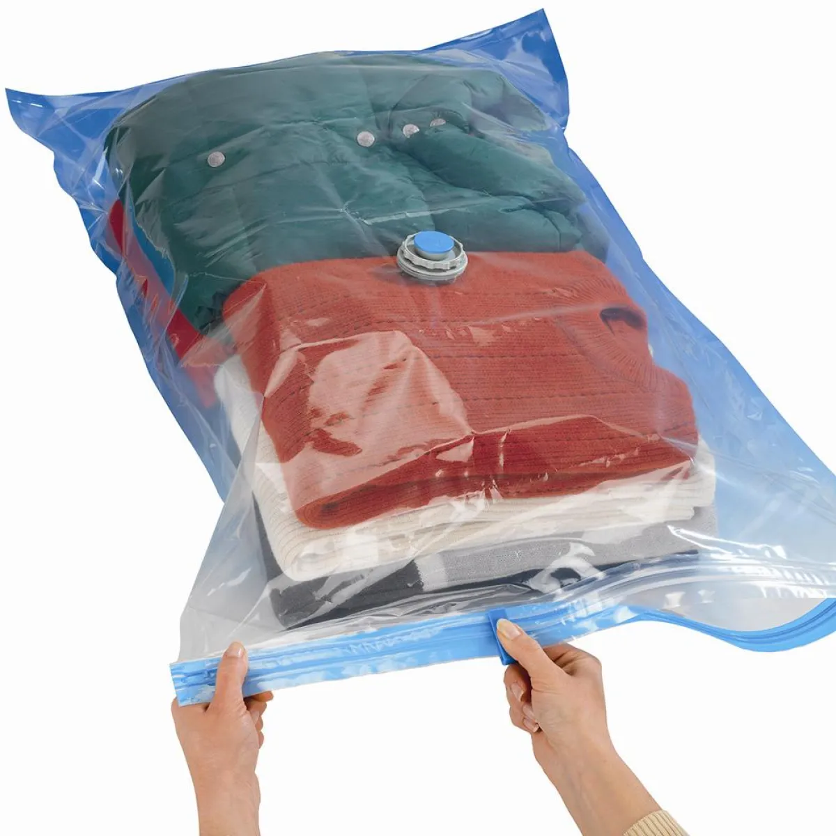 Verwandeln Sie das Verstauen von Kleidung in ein echtes Organisationserlebnis – ganz ohne mühsames Quetschen oder pressen. Dank des transparenten Designs erkennen Sie auf einen Blick den Inhalt und behalten jederzeit die Kontrolle über Ihre Textilien. Nach dem Öffnen nimmt die Kleidung sofort wieder ihr ursprüngliches Volumen und die gewohnte Frische an – Knitterfalten werden reduziert, die Fasern bleiben geschont.