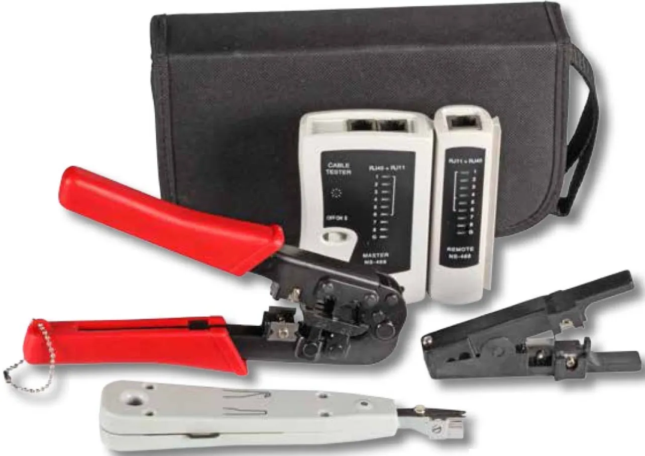 Mit diesem Netzwerk Werkzeugset sind Sie bestens ausgerüstet, um Netzwerke im Heim, Büro oder Serverraum fachgerecht einzurichten, zu warten oder Fehler zu beheben. Alle Werkzeuge sind sicher und übersichtlich in einer robusten Tasche verstaut – so haben Sie Ihr Equipment immer griffbereit und geschützt.