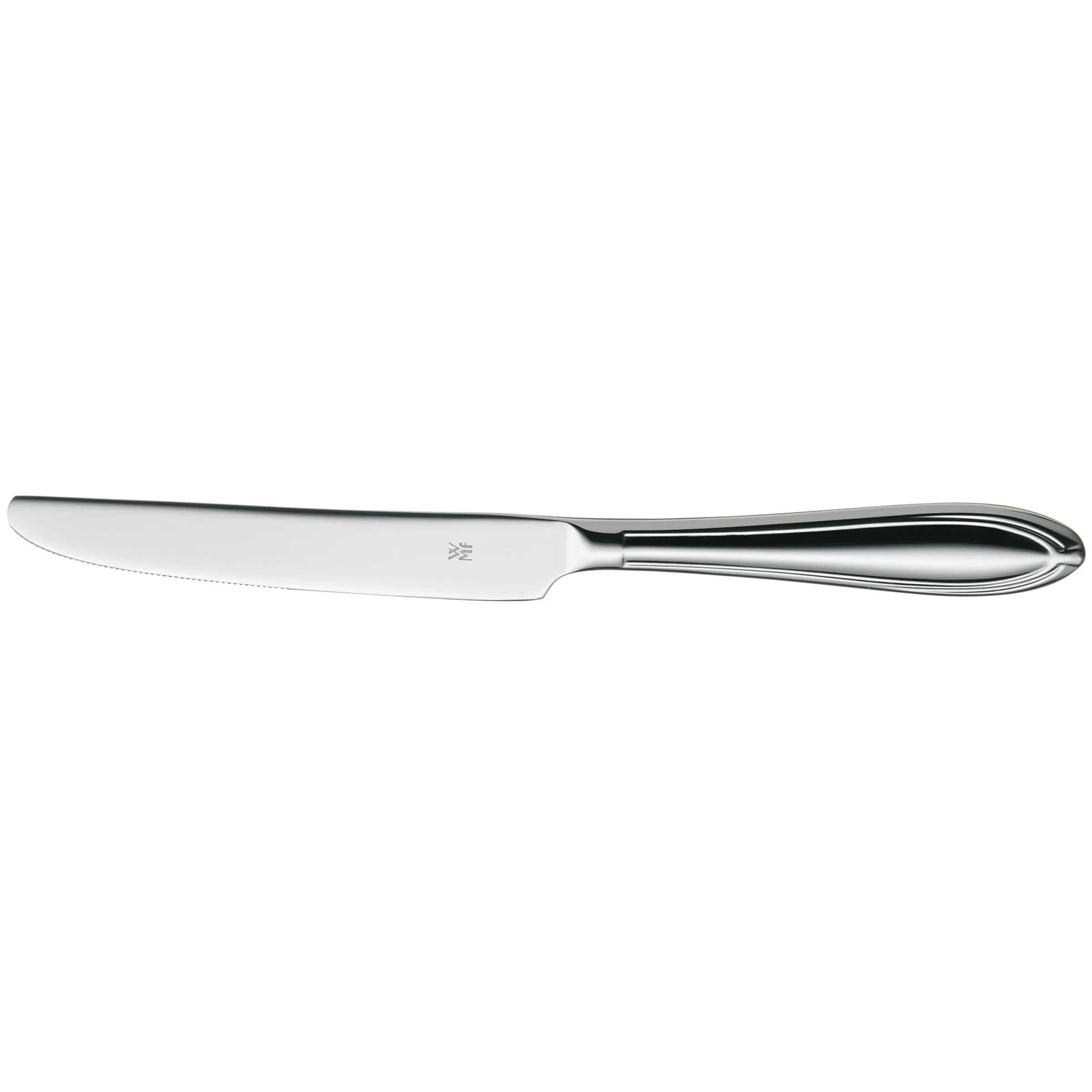 Die WMF Besteckkollektion Verona interpretiert die klassische Biedermeier-Form neu und bringt mit edlen, doppelten Dekorlinien auf Vorder- und Rückseite eine dezente Raffinesse auf Ihren Tisch. Das Obstmesser zeichnet sich durch großzügige Dimensionen aus und wirkt dabei stets elegant – passend zu jedem Anlass und jedem Besteckset.