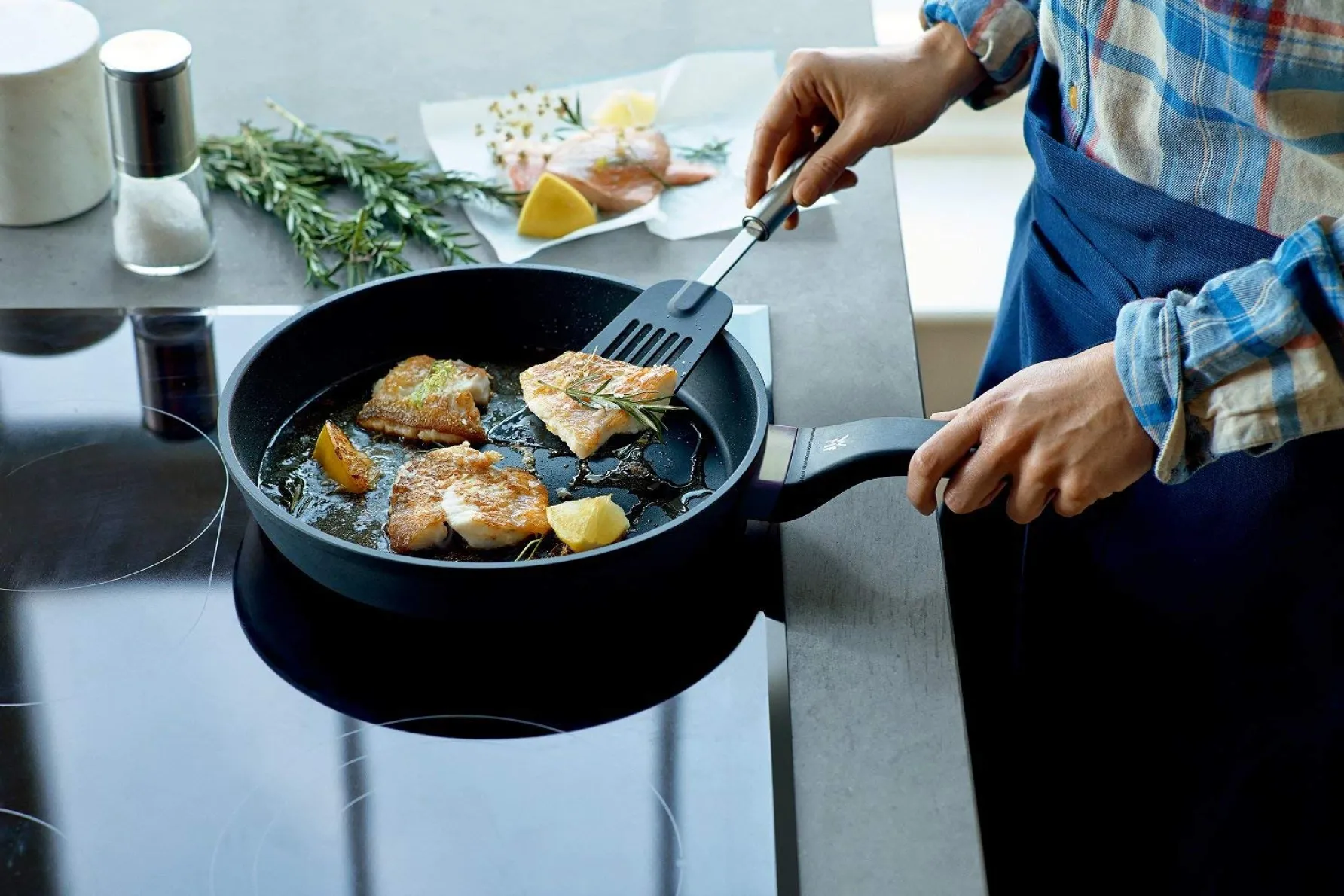 Ob Hobbykoch oder Küchenprofi, mit dieser robusten Induktionspfanne holen Sie sich ein echtes Multitalent in Ihr Zuhause. Zaubern Sie knusprige Bratkartoffeln, aromatischen Lachs oder sanft gebratenes Gemüse – die herausragende Wärmeverteilung und Antihaft-Beschichtung ermöglichen Ihnen einwandfreie Ergebnisse bei jedem Einsatz. Die schwarze Pfanne überzeugt nicht nur im täglichen Gebrauch, sondern macht auch auf dem gedeckten Tisch eine elegante Figur.