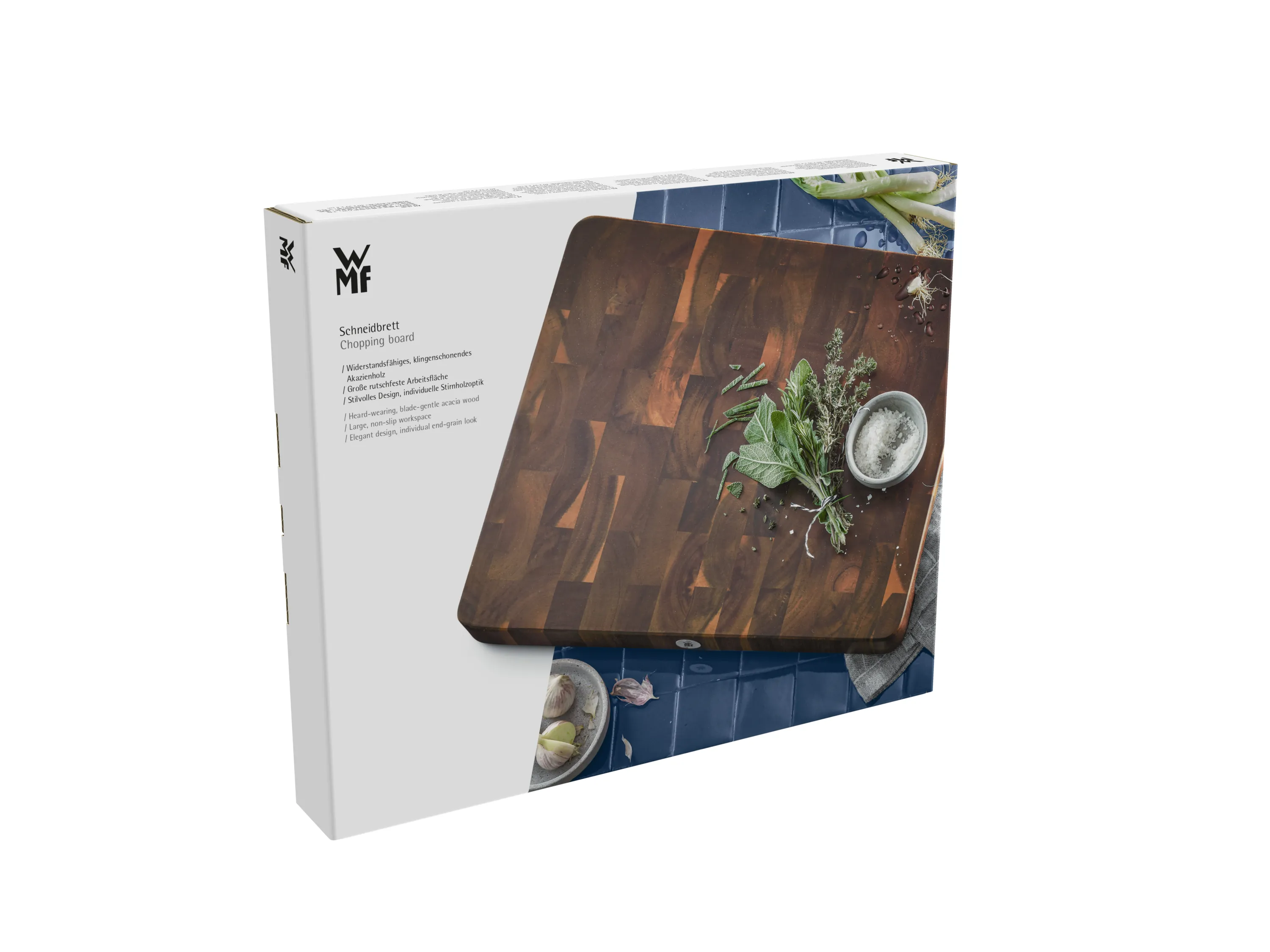 Praktisch, stilvoll und besonders robust: Das WMF Schneidebrett aus Akazienholz bietet eine großflächige und sichere Arbeitsfläche für Ihre Küche – edel im Design, schonend zu Ihren Messern und gemacht für höchste Ansprüche.