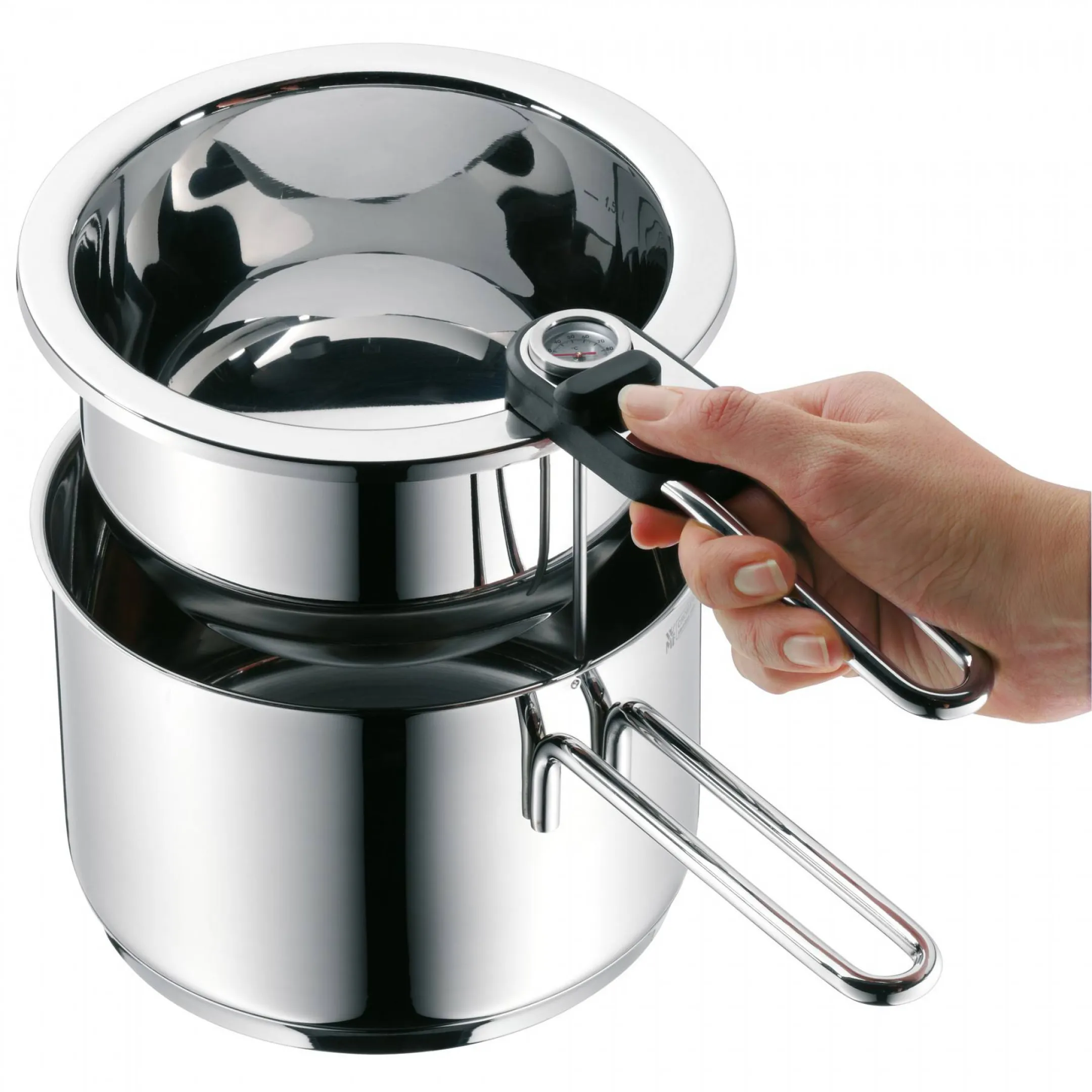 WMF Simmertopf 1,5l 18cm, Wasserbadtopf mit Thermometer, Edelstahl Induktion