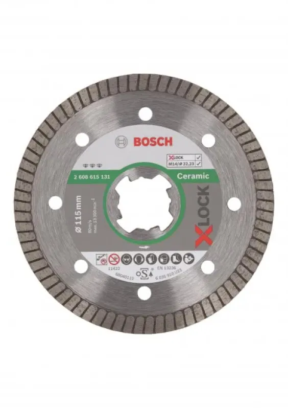 Präzises Arbeiten für Profis und anspruchsvolle Heimwerker: Die Bosch X-LOCK DIA-TS 115x22,23 BfC EC Turbo Diamant-Trennscheibe PRO Ceramic garantiert saubere Schnitte durch Fliesen, Keramik und Naturstein – selbst bei härtesten Materialien.