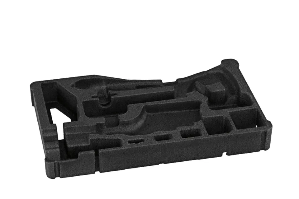 Die maßgefertigte Einlage wurde speziell für die Kombination mit der bewährten XL-BOXX von Bosch entwickelt. So fügen sich Akku-Bohrhammer und Zubehör passgenau in die robuste Einlage ein, was für maximale Raumnutzung sorgt und alles an Ort und Stelle hält. Dank der präzisen Form lässt sich das Werkzeug schnell entnehmen und verstauen – ob auf der Baustelle, in der Werkstatt oder unterwegs im Servicefahrzeug.