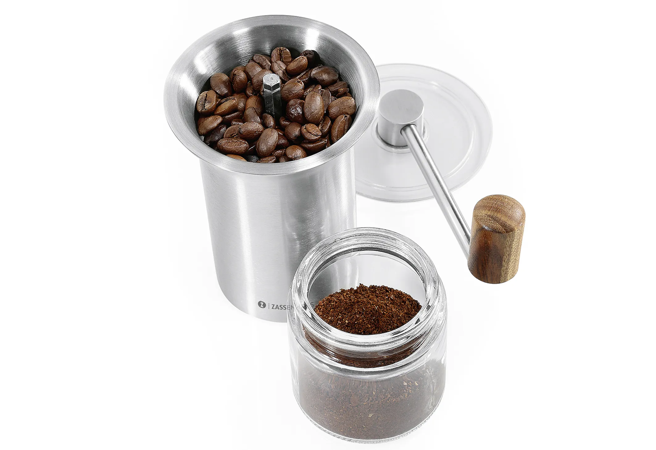 Zassenhaus Kaffeemühle Barista, Handkaffeemühle Edelstahl/Glas, Exakter Mahlgrad