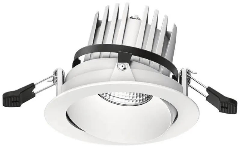 Miniaturisiertes LED-Decken-Einbauleuchte für leistungsstarke Akzentbeleuchtung, Lichtverteilung mit guter Entblendung, Bestückung: 1/14W, Farbwiedergabe Ra > 90, Farbtemperatur 4000 K, neutral weiß, (32 °) WIDEFLOOD-Abstrahlcharakteristik, Reflektor: silber mit Deko-Rand weiß, Farborttoleranz (initial MacAdam): 3, Leuchten Lichtstrom: 1300 lm, Leuchten Lichtausbeute: 93 lm/W, Lebensdauer: 50000h bei 80% Lichtstrom, Komplettmodell bestehend aus Leuchte und Vorschaltgeräte-Einheit, DALI steuerbare Leuchte (DALI only), Lichtkopf um +/-20° schwenkbar, Gehäuse aus Aluminiumdruckguss, Abdeckring weiß, Facettierter Reflektor aus Aluminium, silberfarben hochglänzend, Leuchte halogenfrei verdrahtet, Anschluss: 5-polige Klemme, Leuchten Leistung: 14 W, Netzspannung: 220-240V/ 0/50/60Hz , werkzeuglose Montage über zwei Befestigungsfedern für Deckenstärken von 3-15 mm, Deckenausschnitt: Durchmesser 100mm, Einbautiefe: 110 mm, Gewicht: 0,55 kg Hinweis: Unterschiedliche Farbkombinationen (Design-Personalisierung) der einzelnen Bauteile durch modularen Aufbau möglich und als Variante über myMICROS bestellbar, Bei Einbau in geschlossenen Decken durch optionales Zubehör, ist separat zu bestellen!